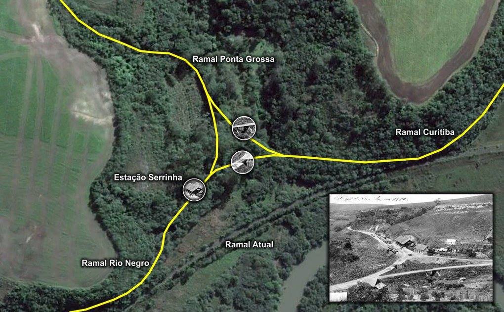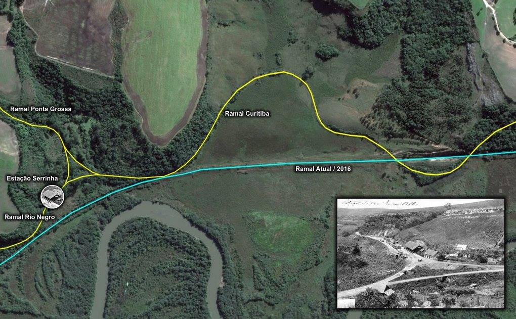 | HISTORICO DA LINHA: A linha unindo Curitiba a Ponta Grossa teve o seu primeiro trecho aberto em 1891, chegando a Ponta Grossa em 1894. Mais ou menos na metade do caminho, a estação de Serrinha, na margem direita do rio Iguassu, dava saída ao ramal de Rio Negro, que seguia para o sul, enquanto a linha de Ponta Grossa seguia para noroeste. Nos anos 1930 e 40, houve algumas modificações no traçado na região de Serrinha, e o entroncamento passou a ser feito na estação de Engenheiro Bley, próximo a Serrinha mas na margem esquerda do rio. No final dos anos 1969, uma variante ligando esta última a Ponta Grossa tirou várias estações da linha; em 1977, a variante Pinhais-Engenheiro Bley tirou mais outras, modificando totalmente o curso do ramal original. No início dos anos 1990, já não sobrava mais nada da antiga linha em seu leito original. | ||