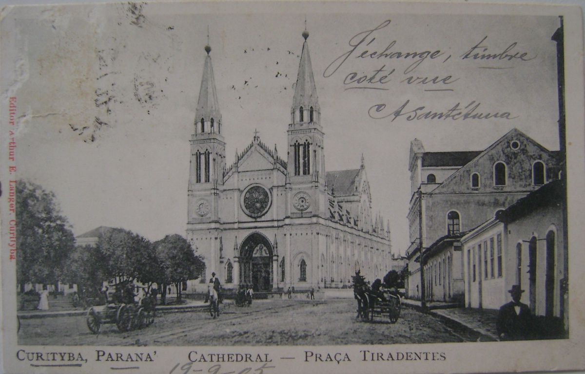 Cartão Postal Curitiba, PR. Catedral, Praça Tiradentes. Ed. Arthur E. Langer.