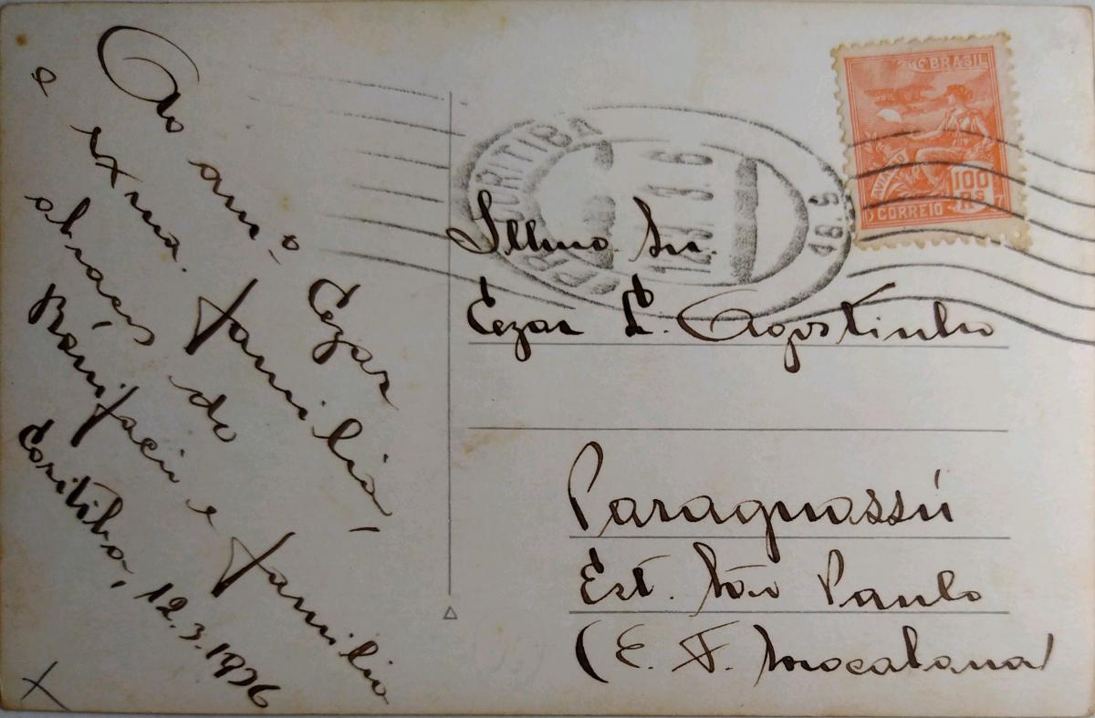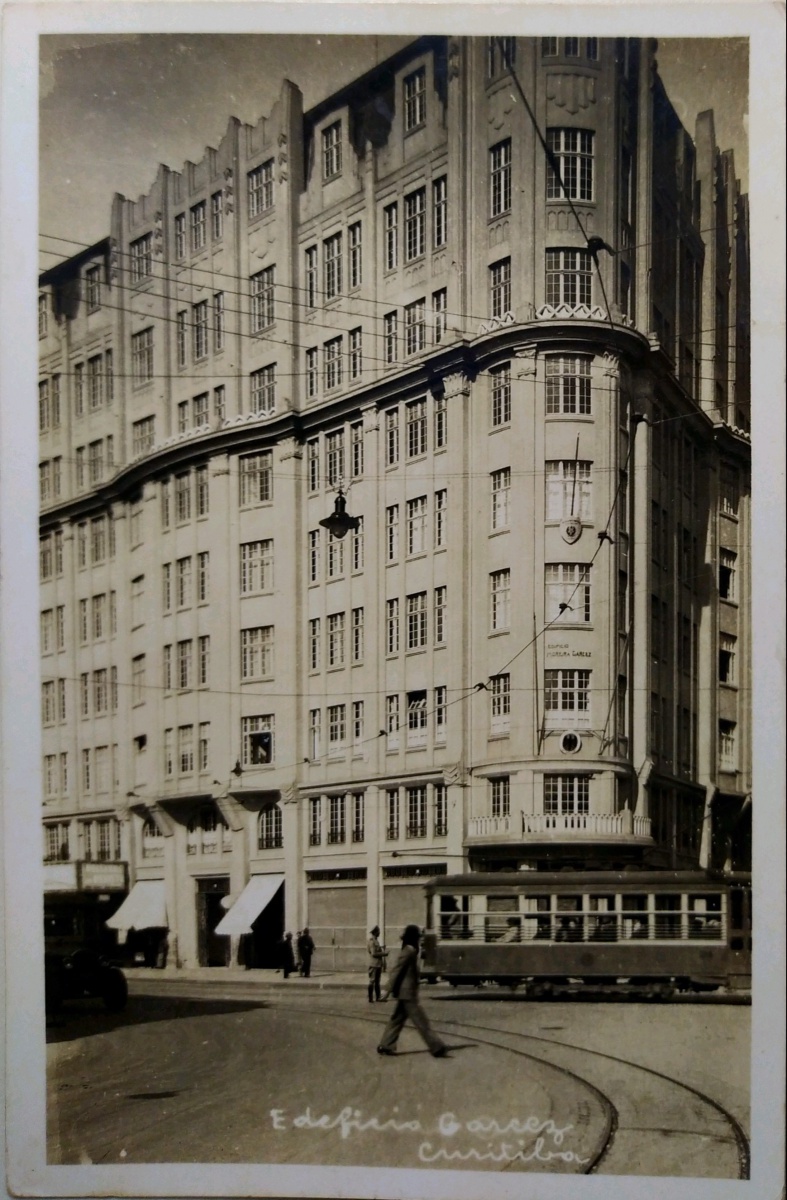 Cartão Postal Curitiba, PR. Edifício Garcez Curitiba. Circulado em 1936.