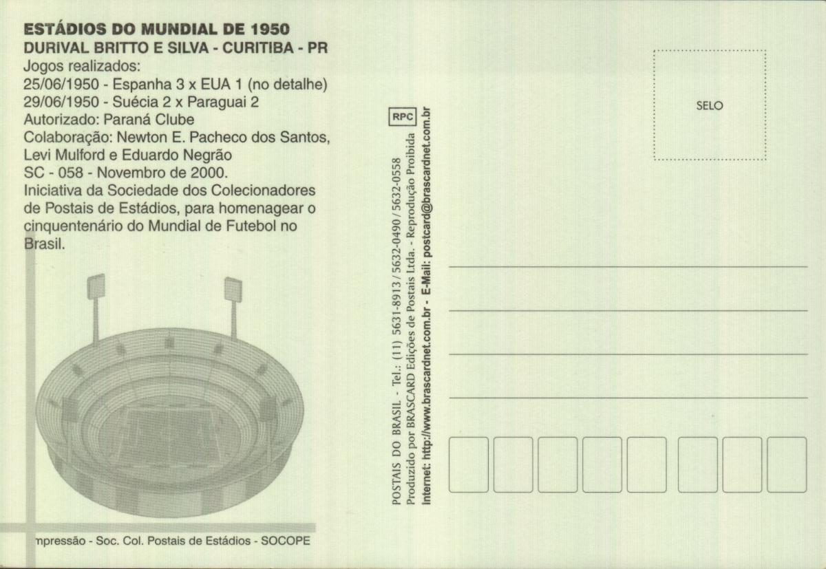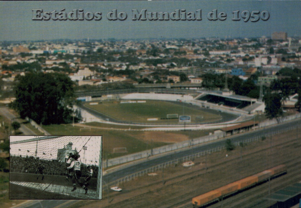 Cartão Postal Estádio Durival Britto e Silva, Curitiba, PR. Palco da Copa do Mundo de 1950, jogos realizados: Espanha X Estados Unidos e Suécia e Paraguai.