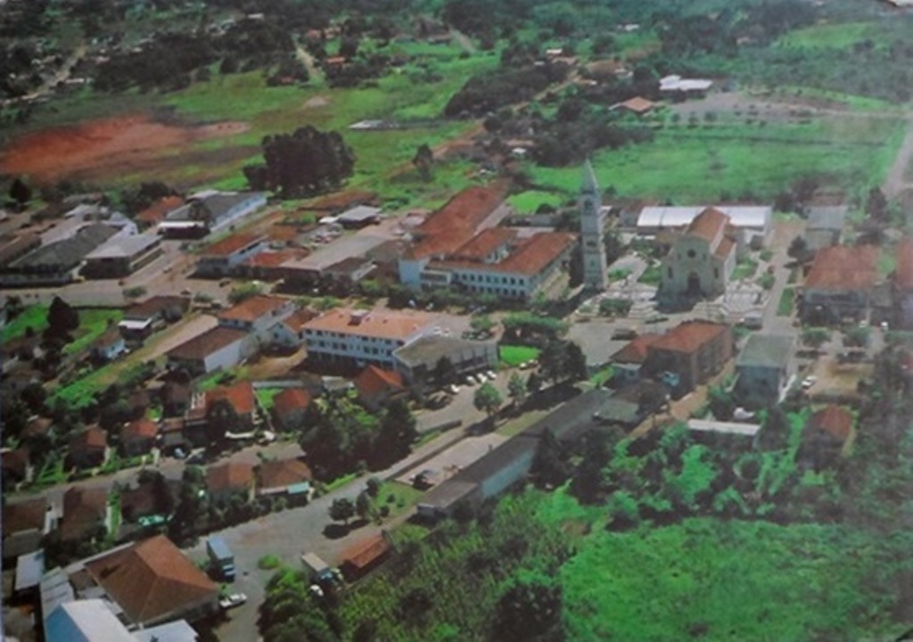 Postal fotográfico com imagem da vista aérea de `Santa Felicidade - Curitiba`, Paraná, década de 70.