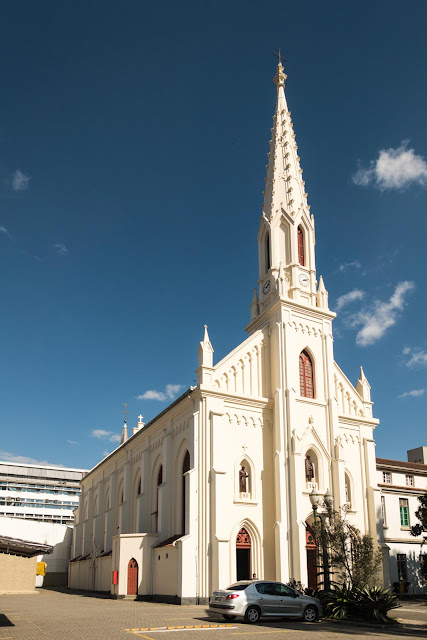 “A composição arquitetônica da igreja é neogótica, corrente estilística muito empregada nas edificações religiosas deste período. O neogótico foi trazido da Europa com os demais estilos revividos pelo ecletismo, no final do século XIX. As características deste estilo estão na tendência longilínea das suas paredes, no verticalismo de seus elementos arquitetônicos.”