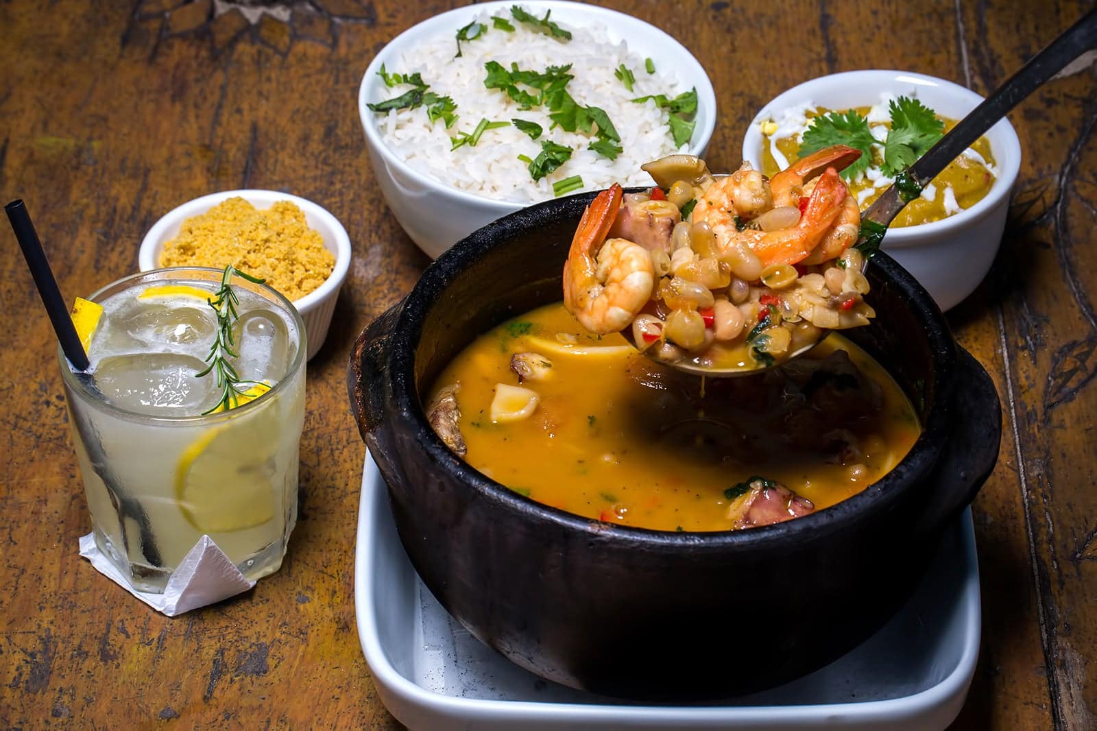 Um dos pratos mais tradicionais e pedidos no Garrafa de Nansen é o camarão à condorvert, com espinafre e molho de queijo gratinado. As moquecas de peixe e camarão também fazem sucesso, junto com a casquinha de siri.