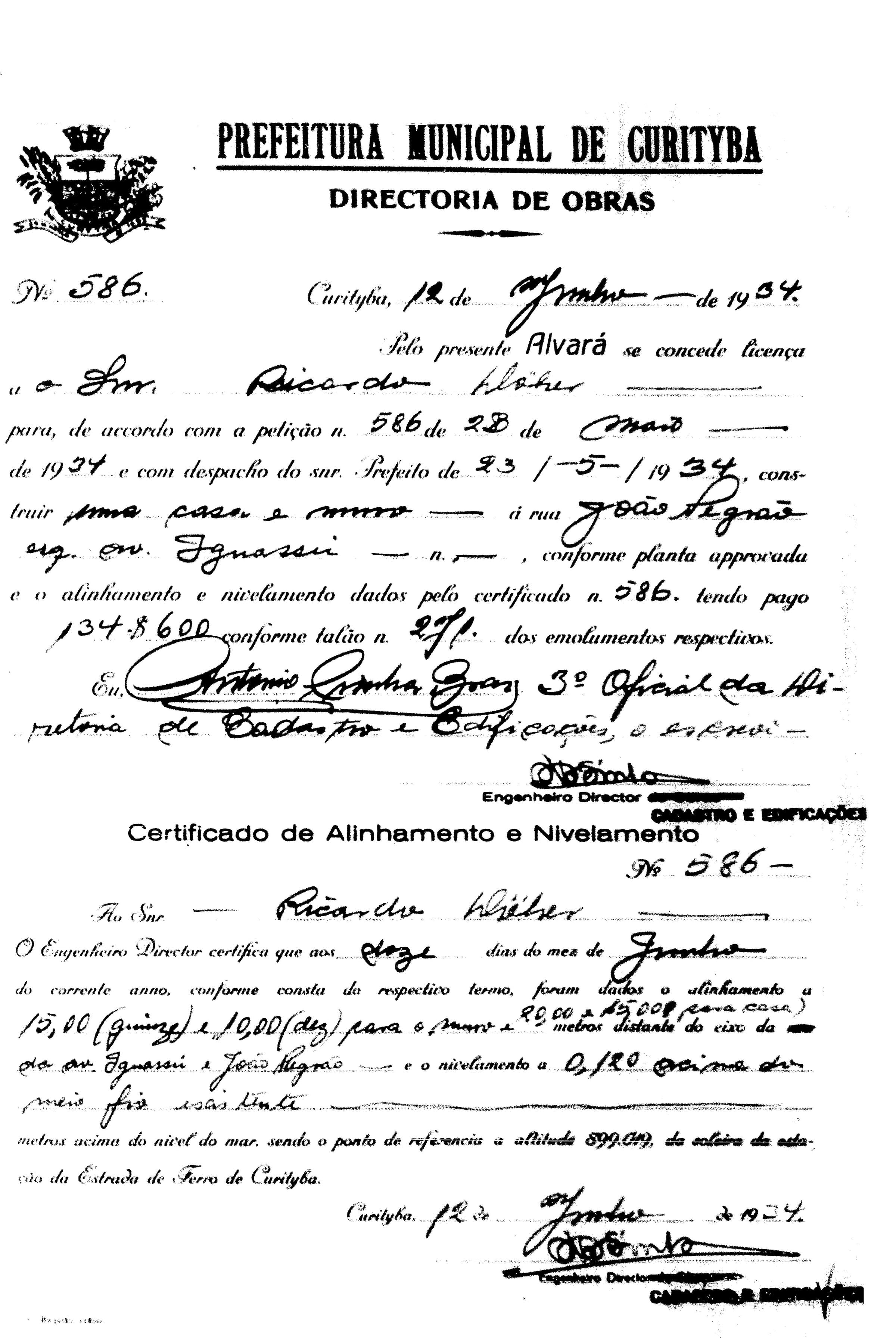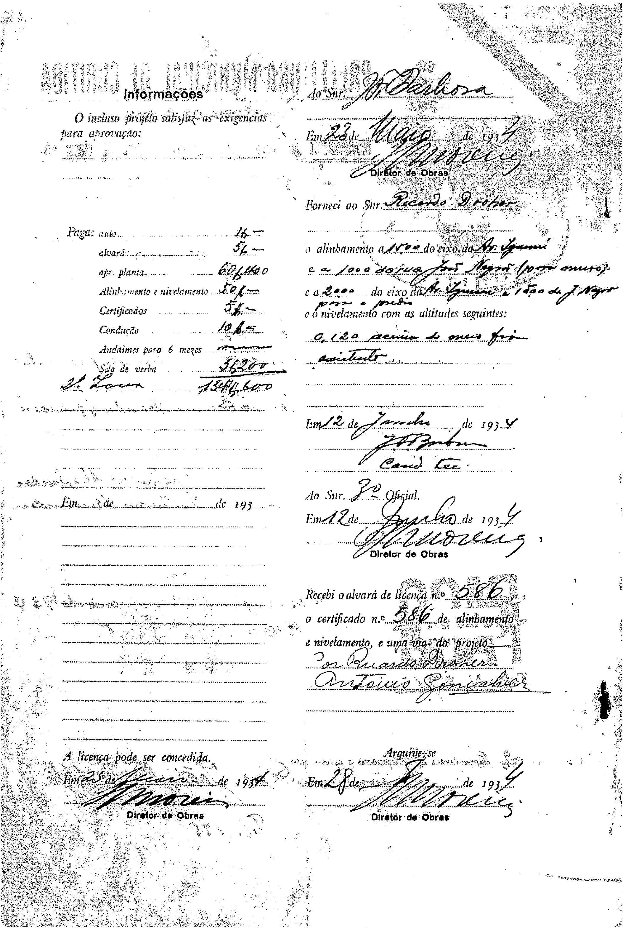 Alvará de Construção: Nº 586/1934