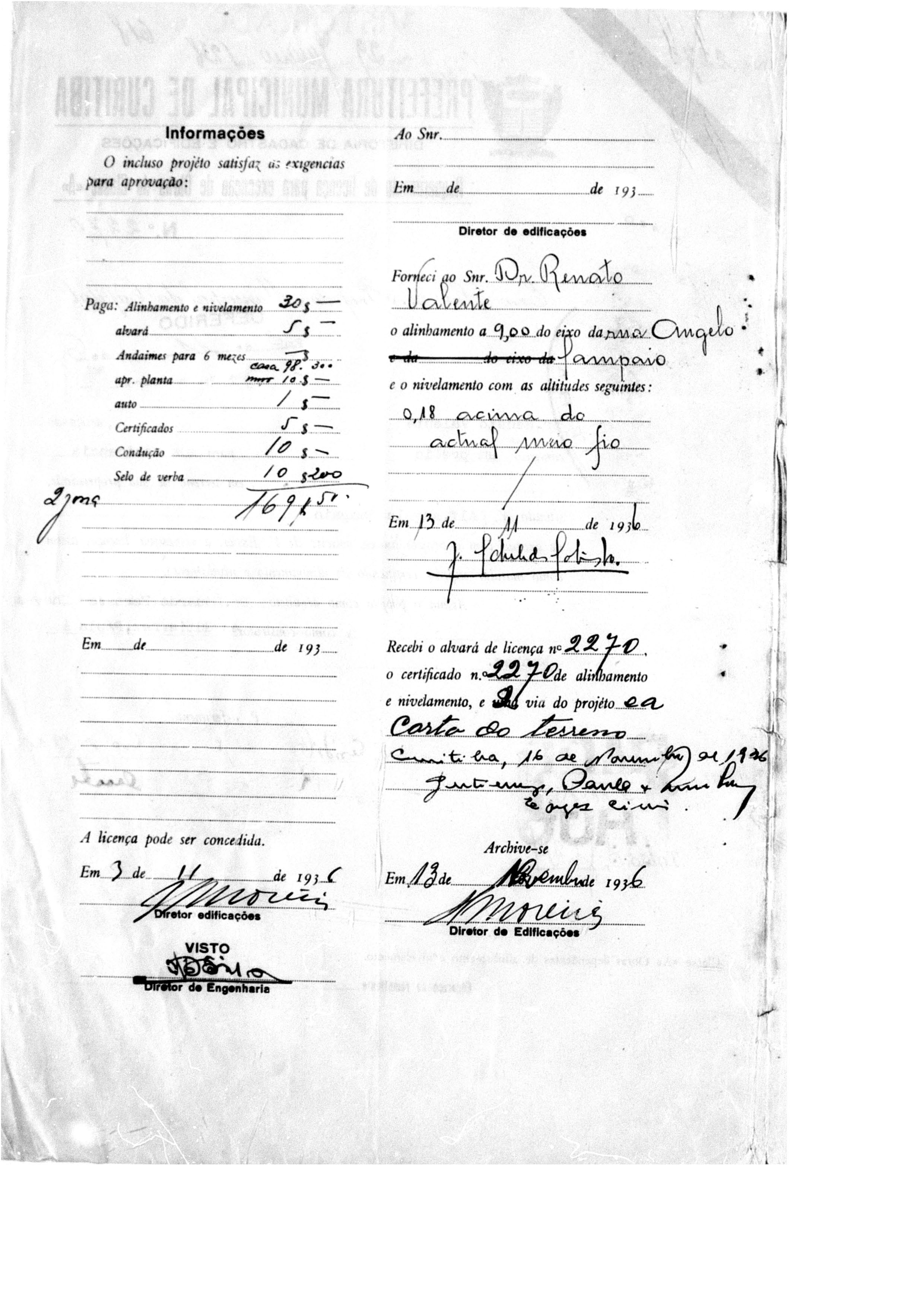 O projeto original, preservado em microfilme digitalizado no Arquivo Público Municipal de Curitiba, compõe-se de duas pranchas detalhadas, nas quais Chaves articula com clareza: