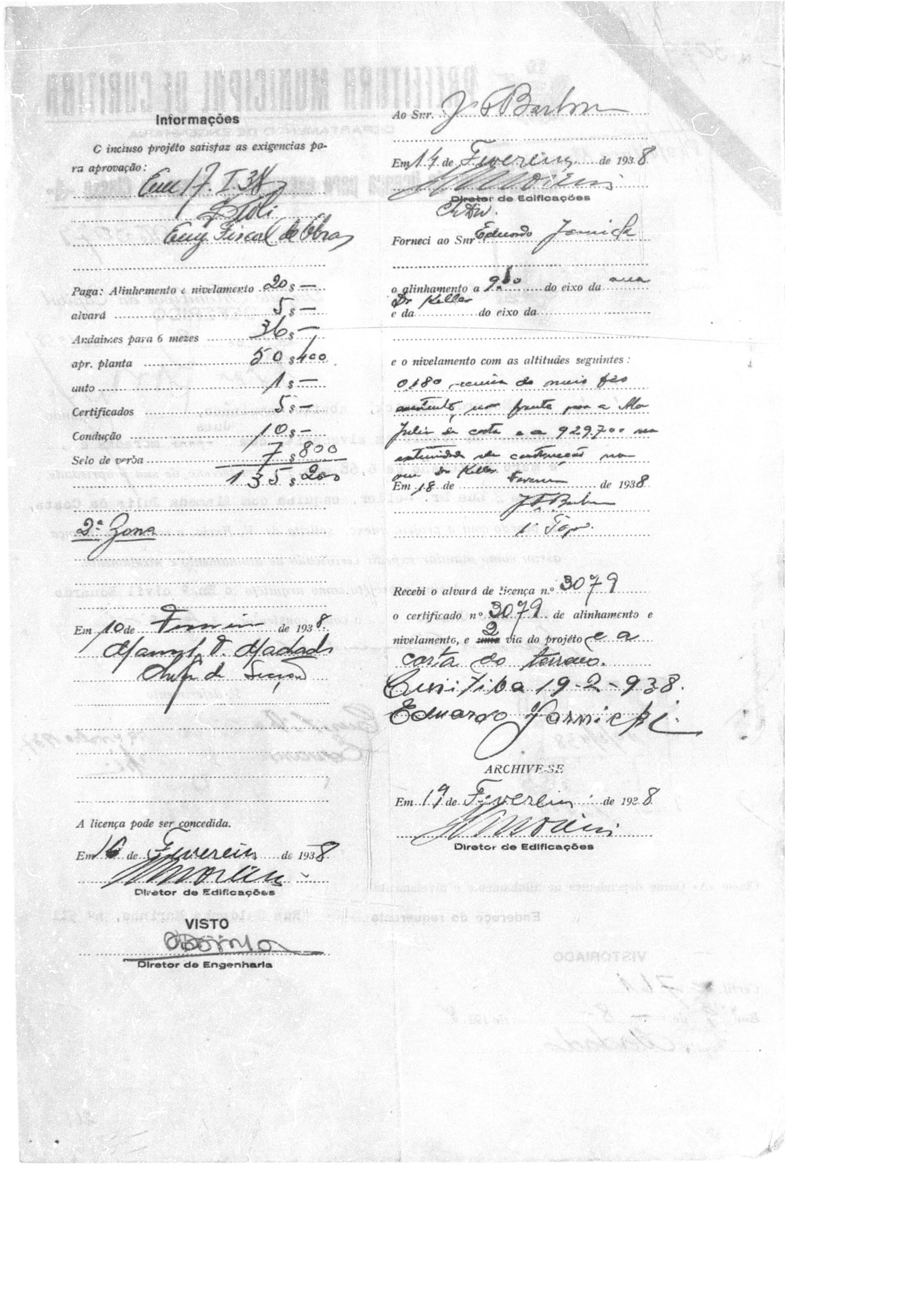 Elaborado sob o número de Alvará de Construção nº 3079/1938, o projeto arquitetônico traduz os princípios da arquitetura residencial de pequeno porte da década de 1930 em Curitiba: