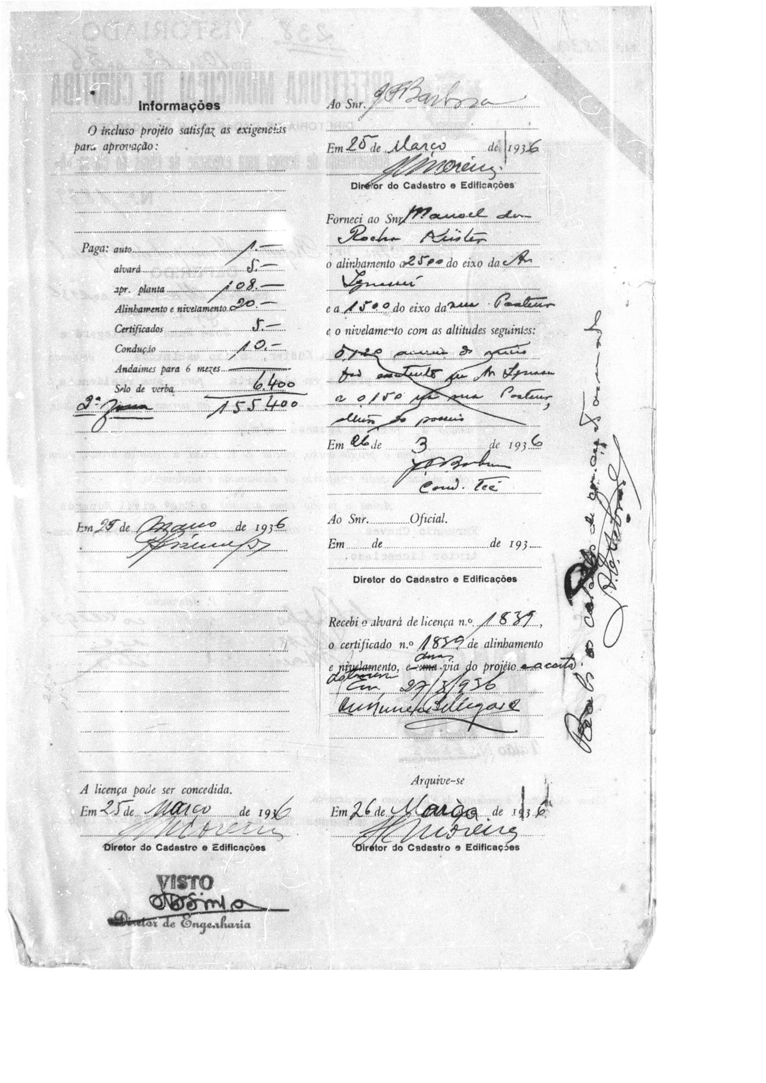 O projeto arquitetônico, datado de 25 de março de 1936, foi registrado sob o Alvará de Construção nº 1839/1936 e inclui:
