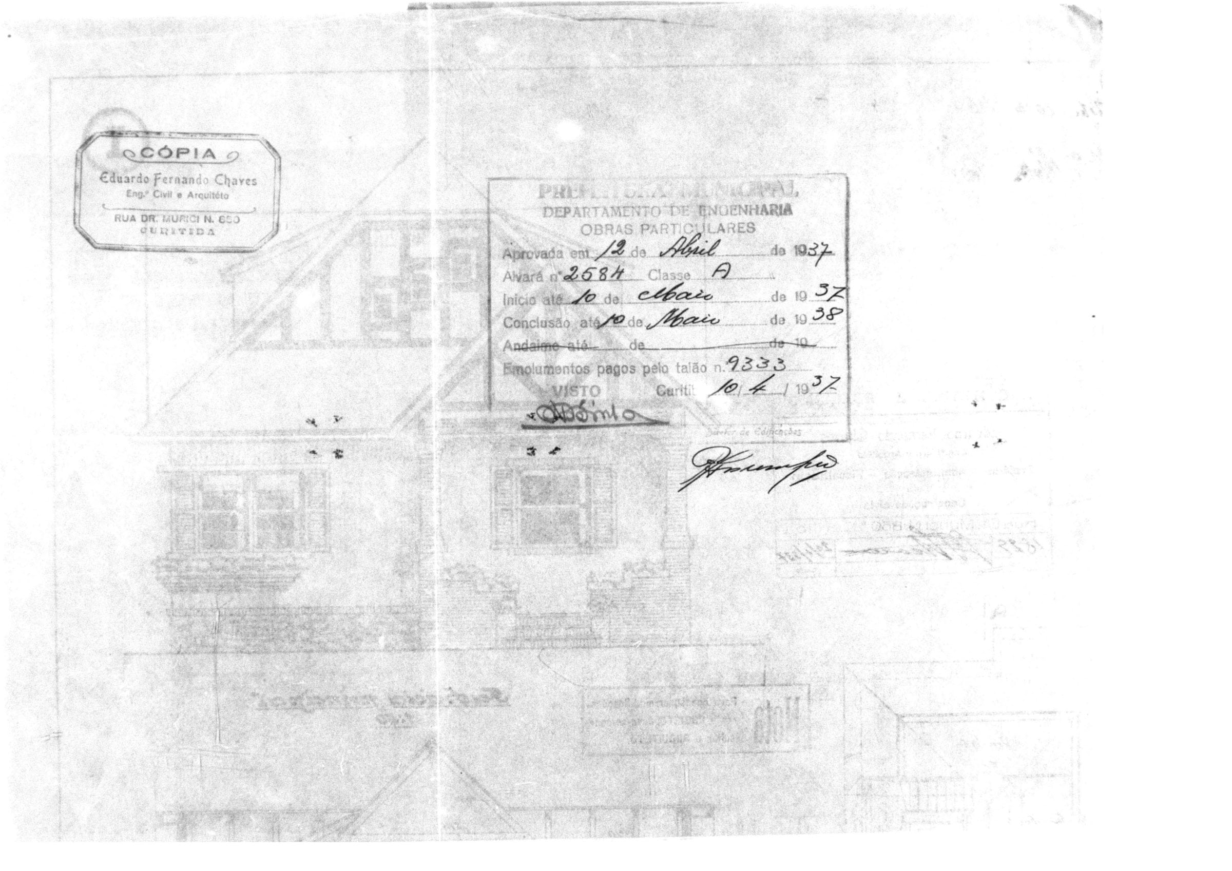 Na primavera de 1937, enquanto Curitiba respirava os ares de transformação urbana e social que marcaríam a segunda metade do século XX, o arquiteto Eduardo Fernando Chaves colocava no papel um dos seus projetos mais completos até então: o “Projéto de Bungalow, Garage e Depósito de Lenha para o Snr. Moysés de Andrade”, localizado na Rua Silva Jardim, nº 975.