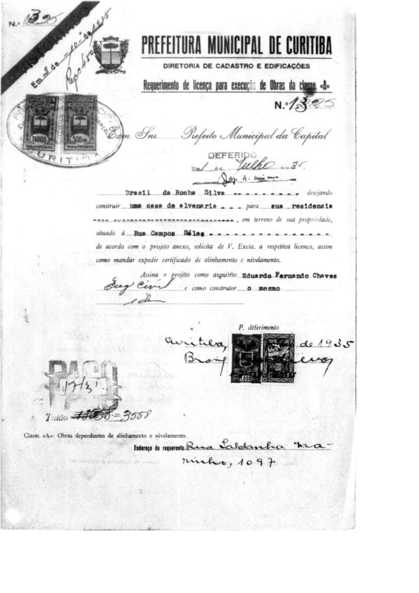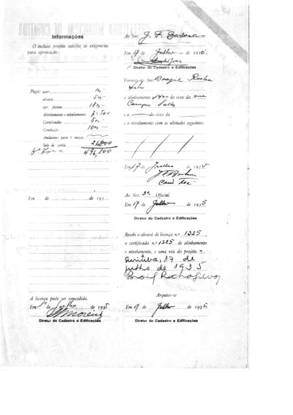 - Alvará de Construção nº 1325/1935. Prefeitura Municipal de Curitiba.