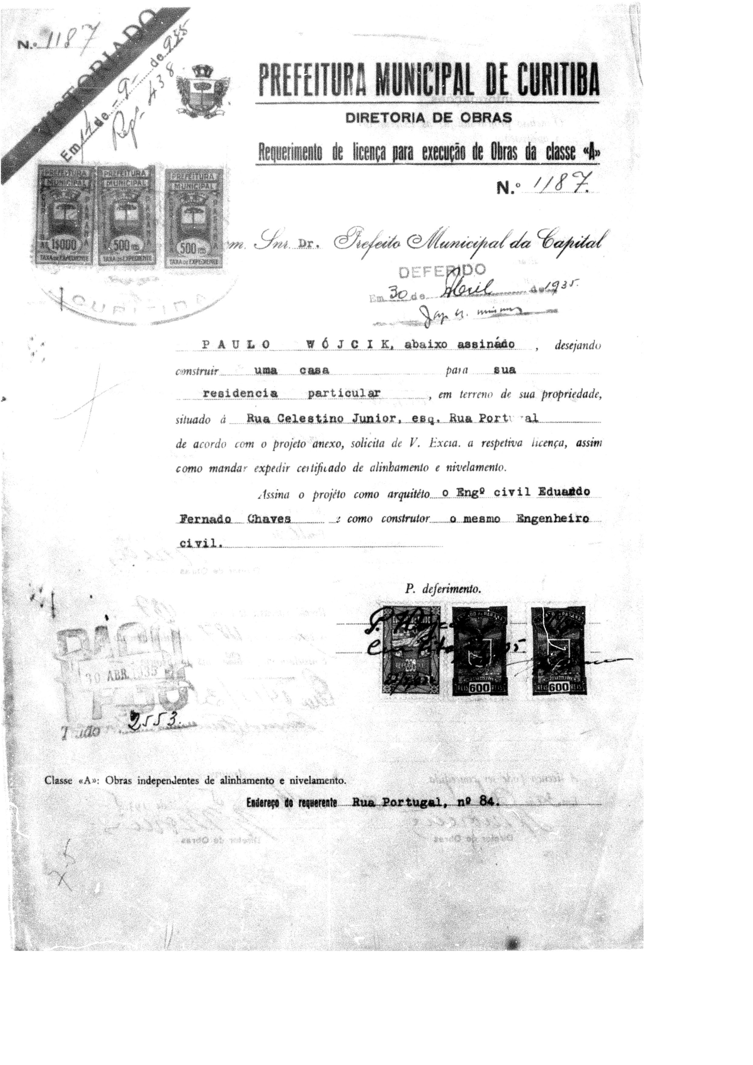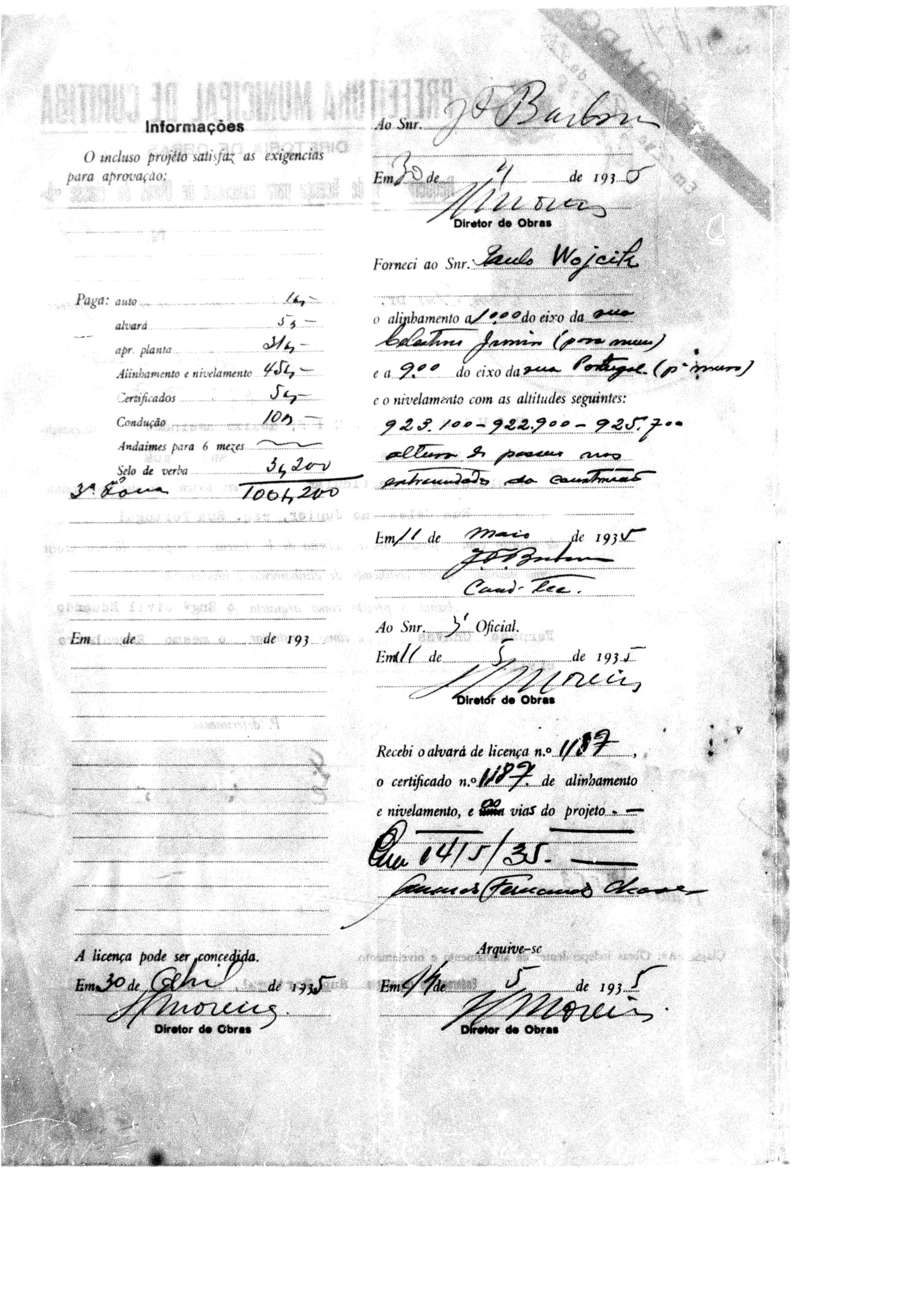 O Alvará de Construção nº 1187/1935 atestou a regularidade da obra perante a Prefeitura, garantindo que o sonho de Paulo Wójcik se tornasse realidade em concreto, madeira e argamassa.