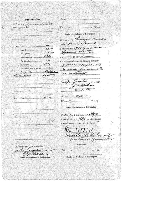 O Alvará de Construção nº 1290/1935, emitido pelo poder público recifense, confirmou a viabilidade da obra, integrando-a ao tecido legal e urbano da cidade.