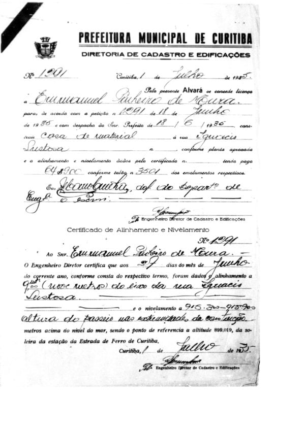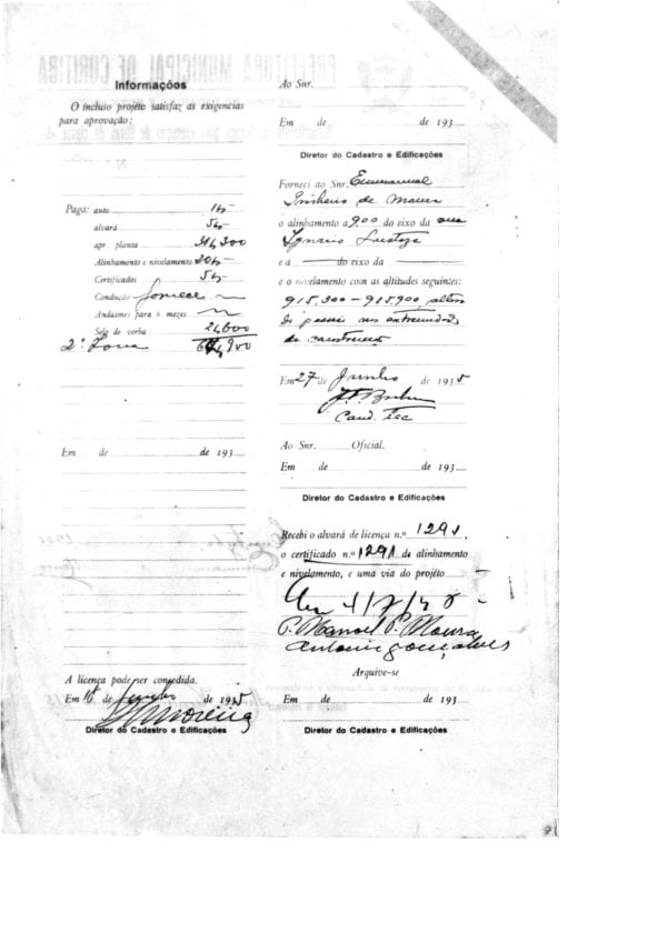 - Alvará de Construção nº 1291/1935. Arquivo Histórico de Curitiba.