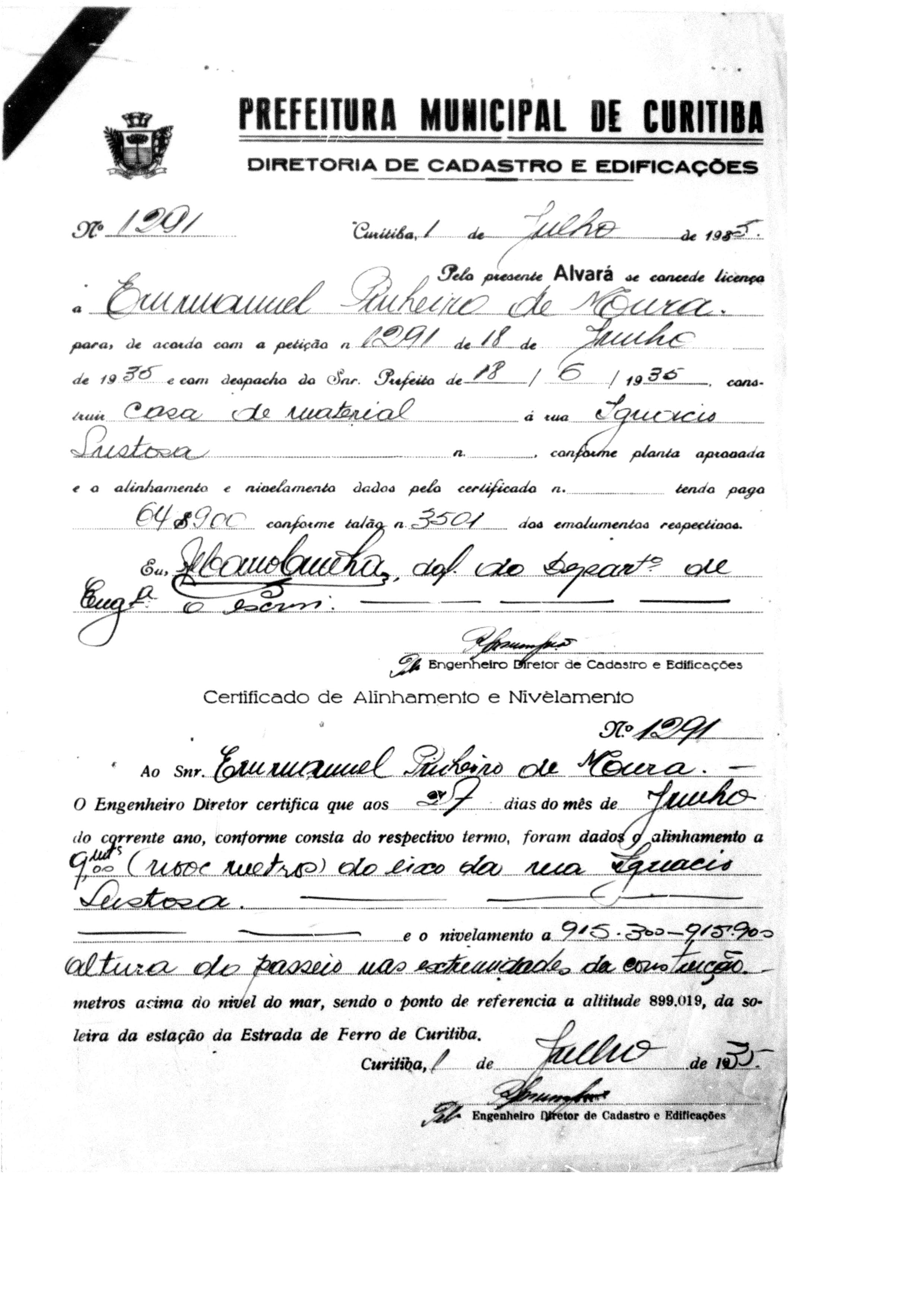 Alvará de Construção: Nº 1291/1935