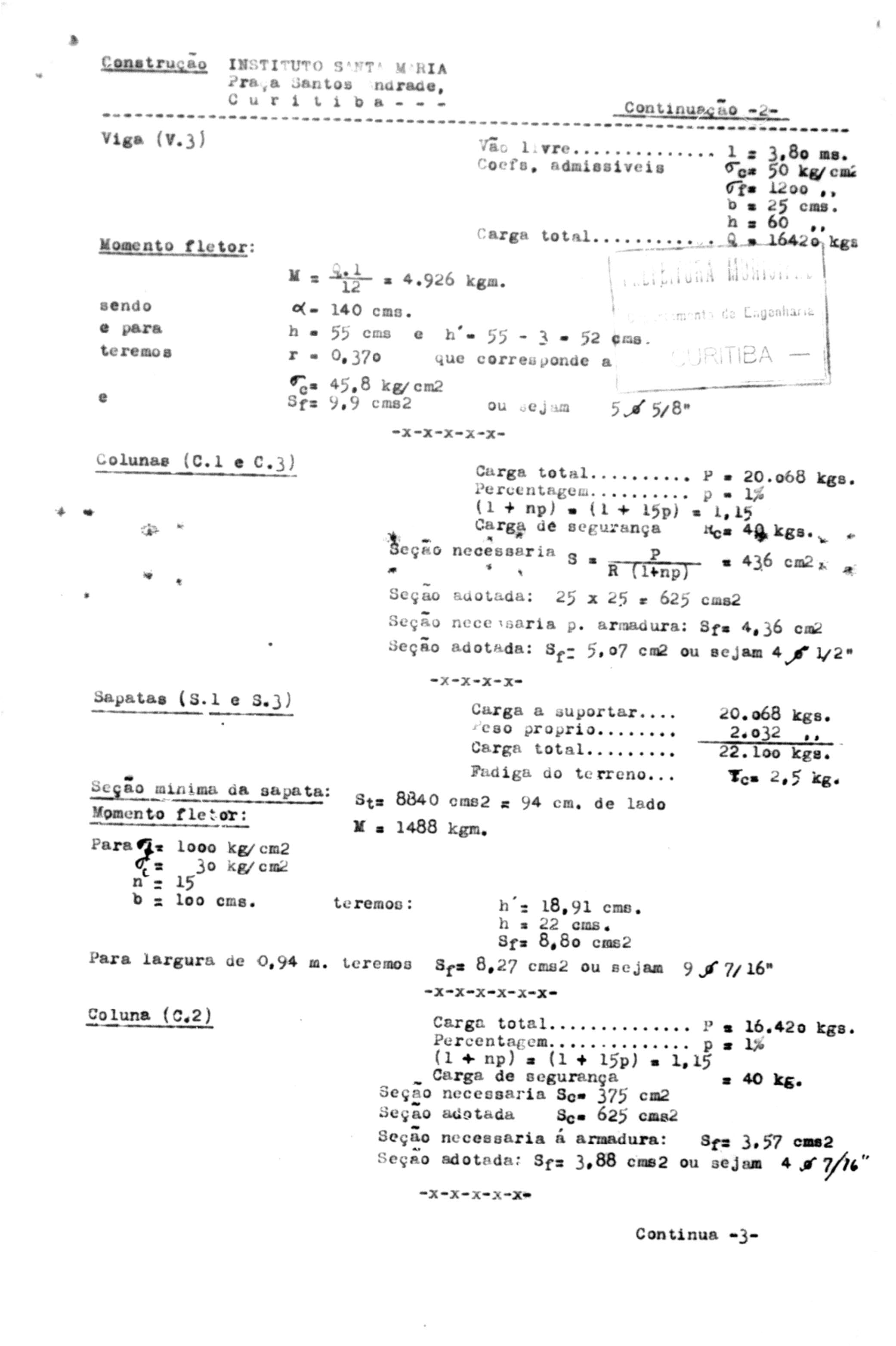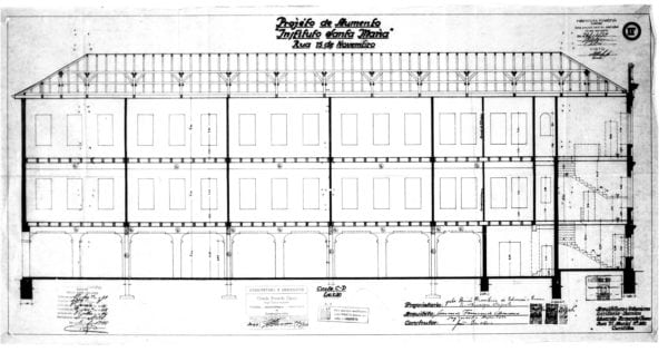 9 – Projeto arquitetônico para aumento, com estruturas em concreto, do Instituto Santa Maria. Alvará 3055.