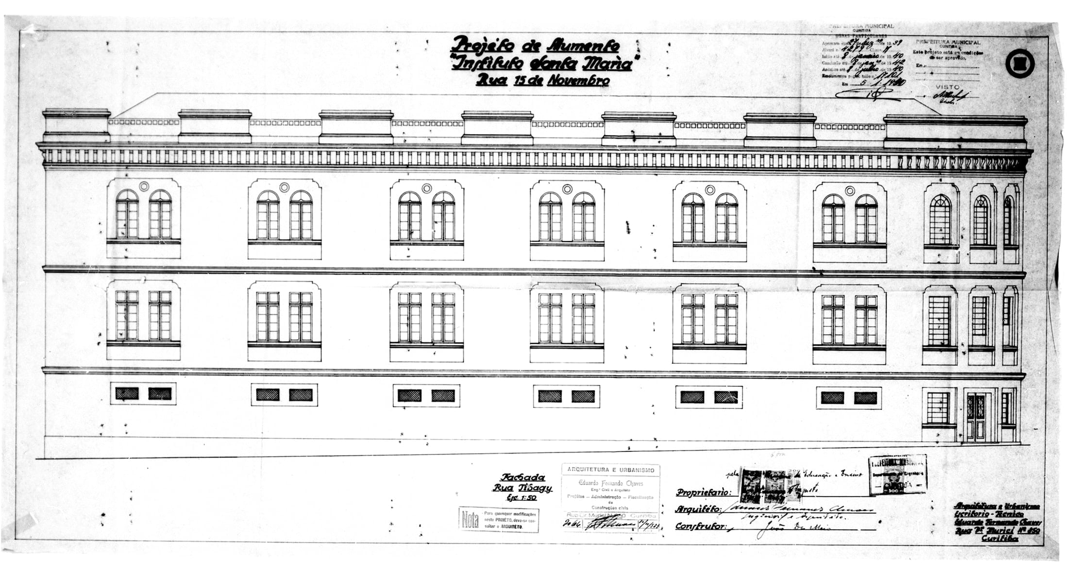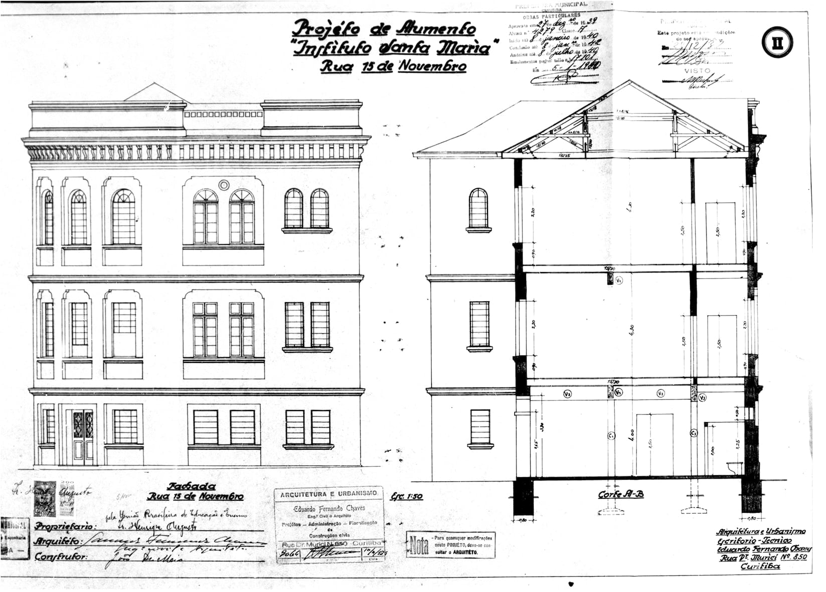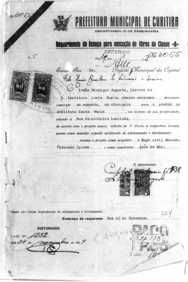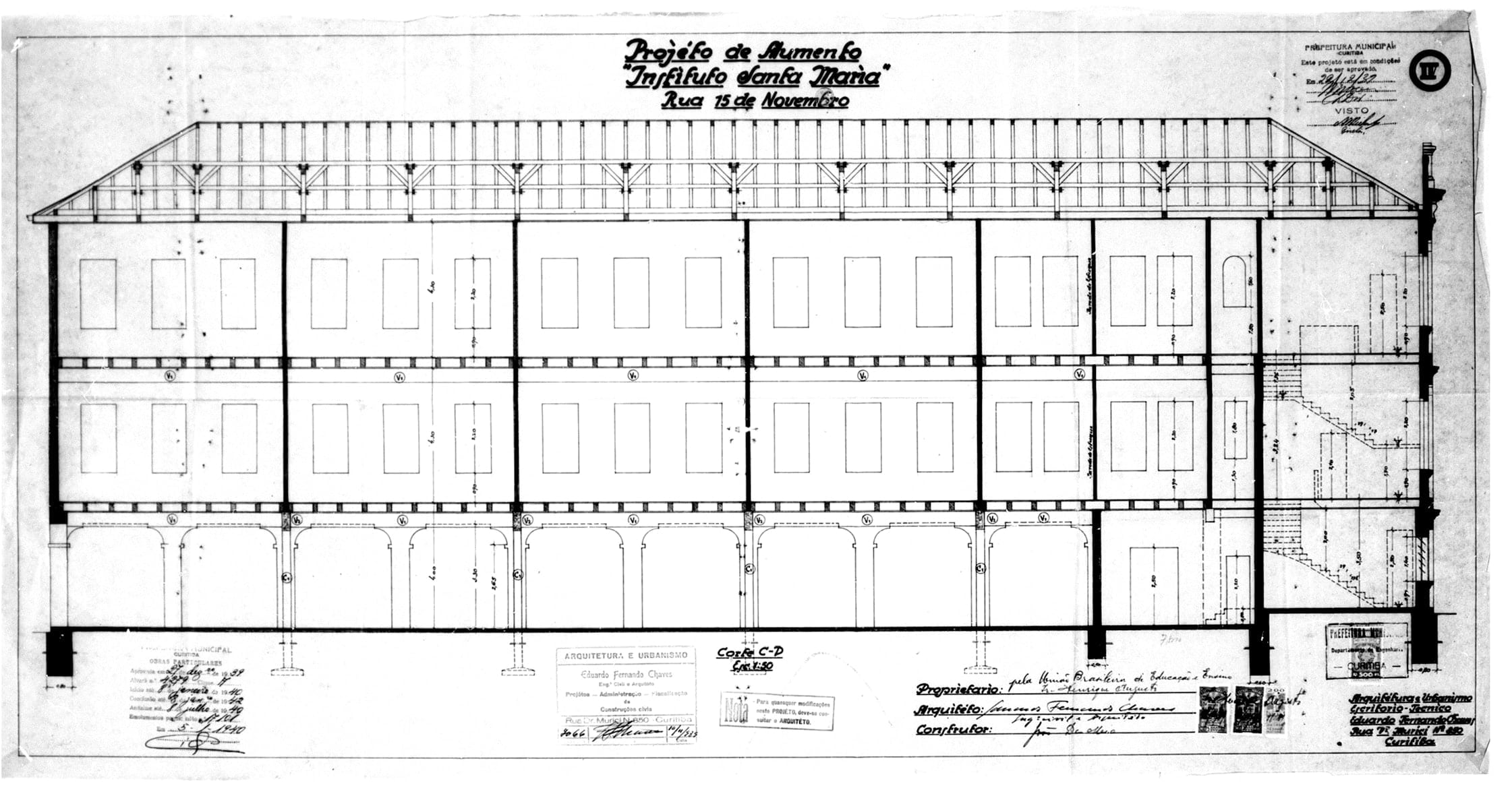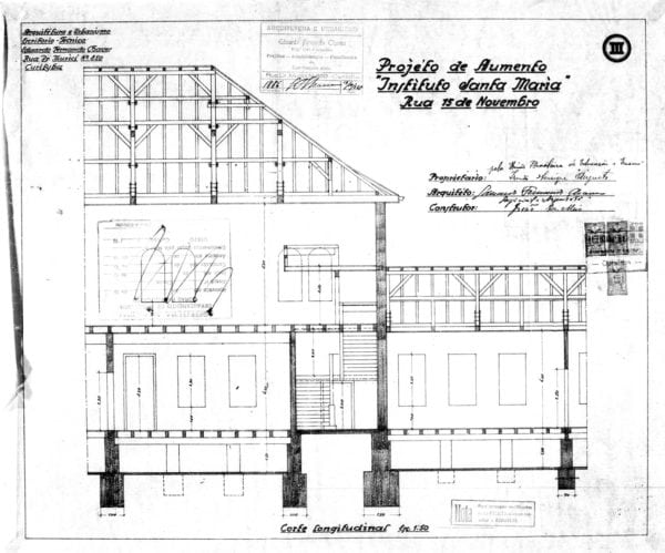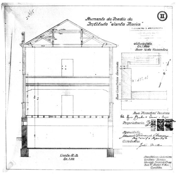 19 – CHAVES, Eduardo Fernando. Projéto para Aumento do Prédio do Instituto Santa Maria. Rua XV de Novembro. Alvará nº
