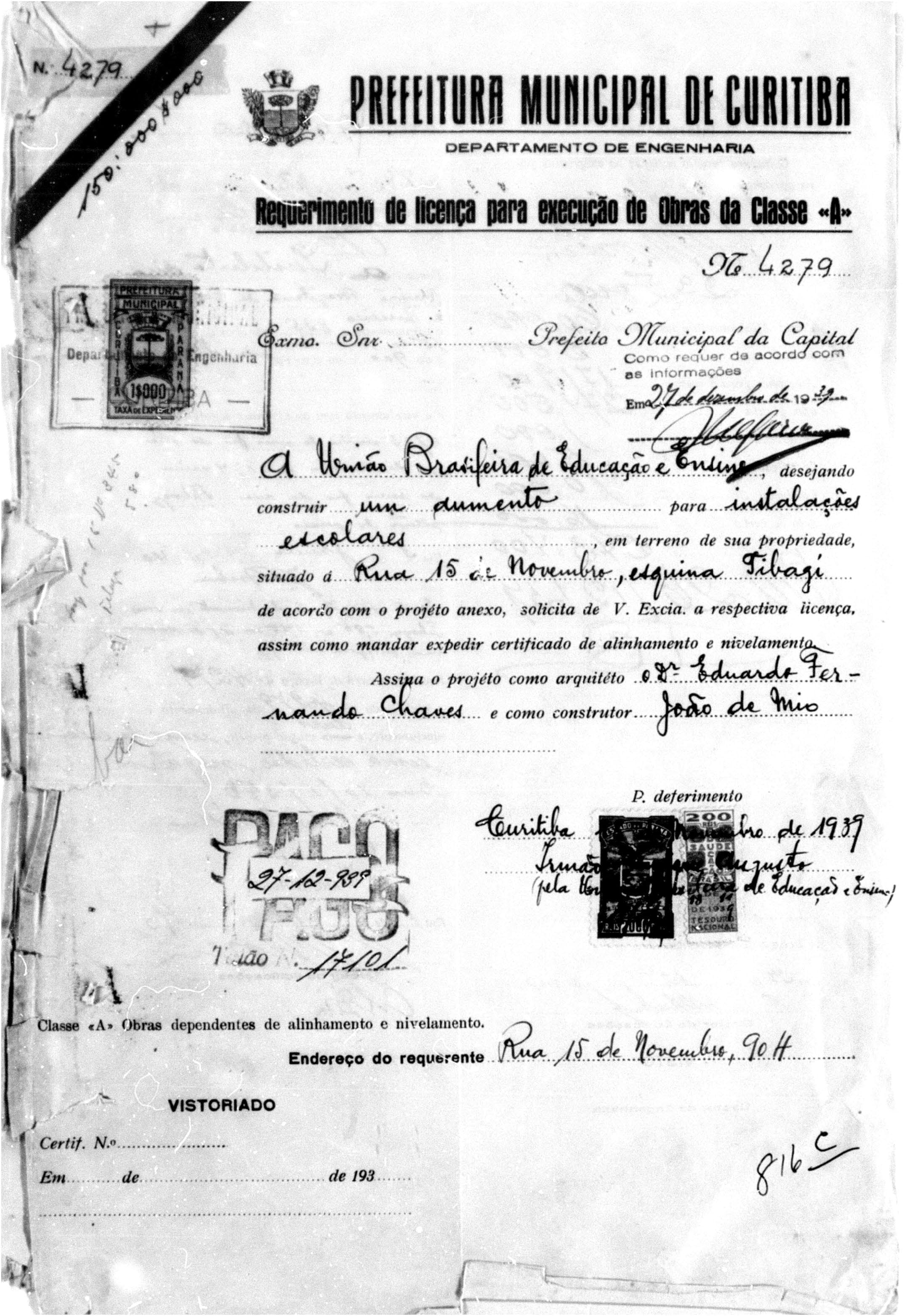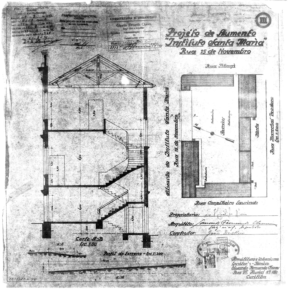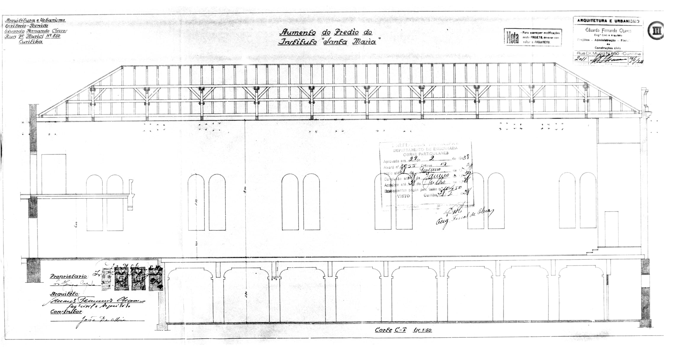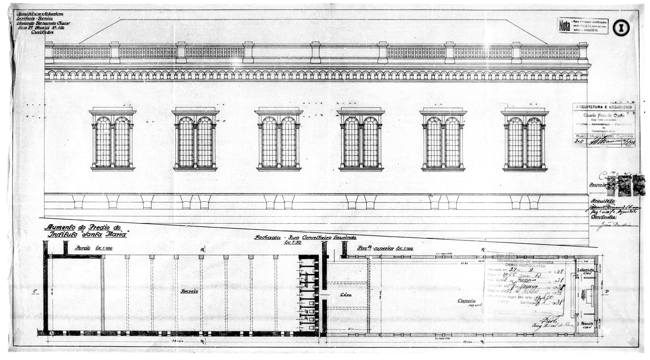 19 – CHAVES, Eduardo Fernando. Projéto para Aumento do Prédio do Instituto Santa Maria. Rua XV de Novembro. Alvará nº