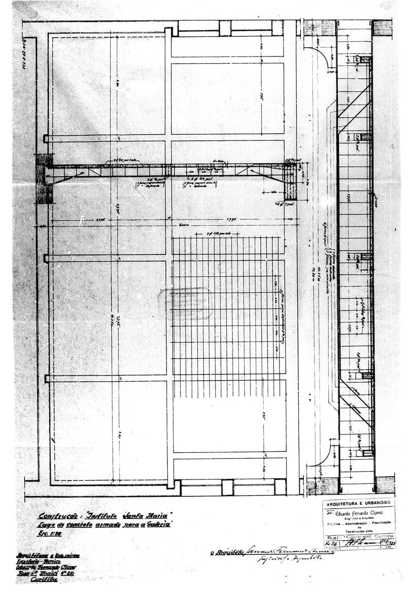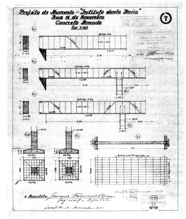7 – Projeto arquitetônico para aumento, com estruturas em concreto, do Instituto Santa Maria. Alvará 3055.