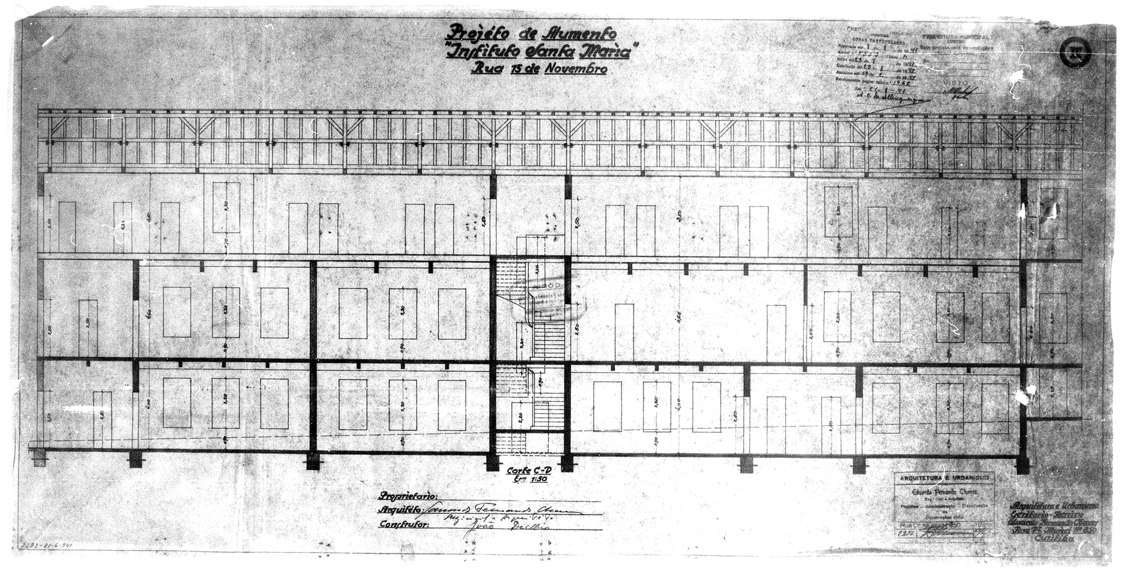 3 - Projeto arquitetônico para aumento do Instituto Santa Maria na face voltada para a Rua XV de Novembro. Alvará 2950.