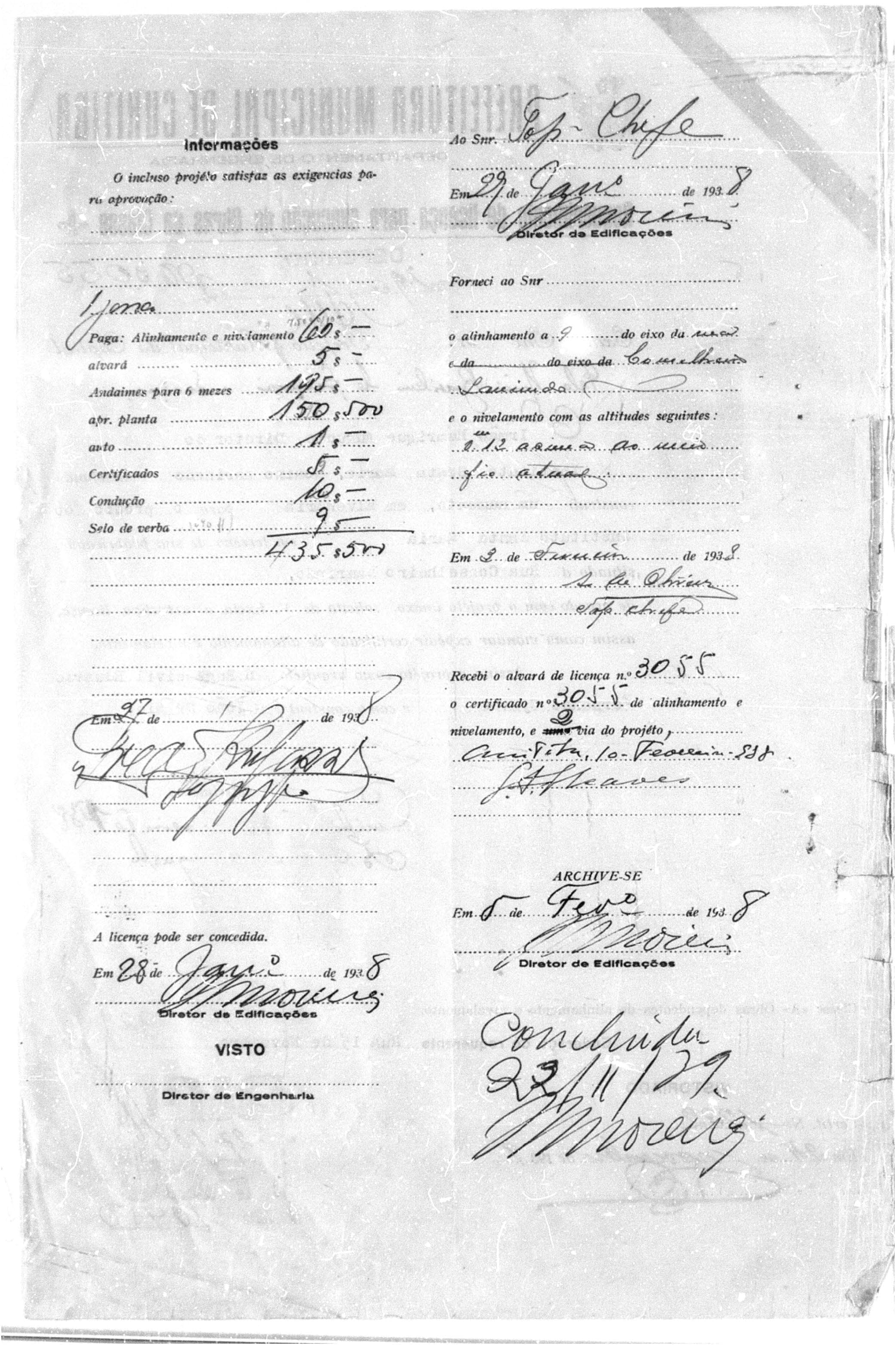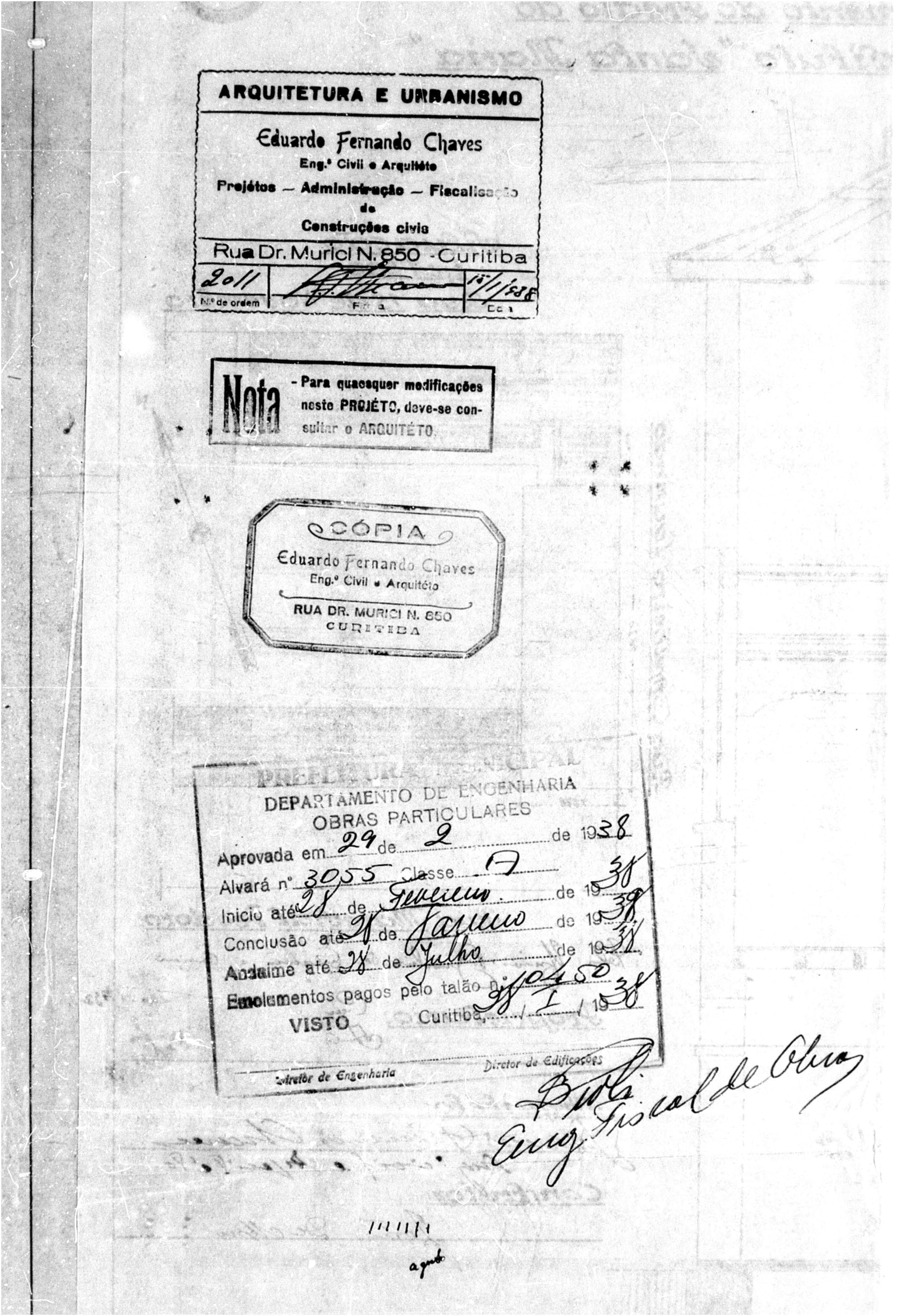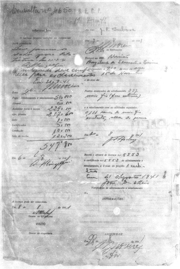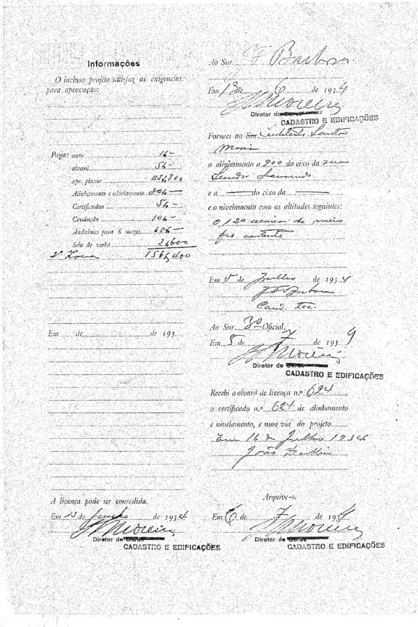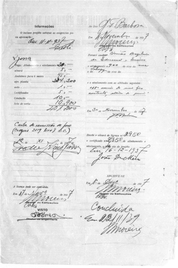 - Alvará nº 3055/1938: introdução de estruturas em concreto armado, sinalizando modernização técnica e maior escala.