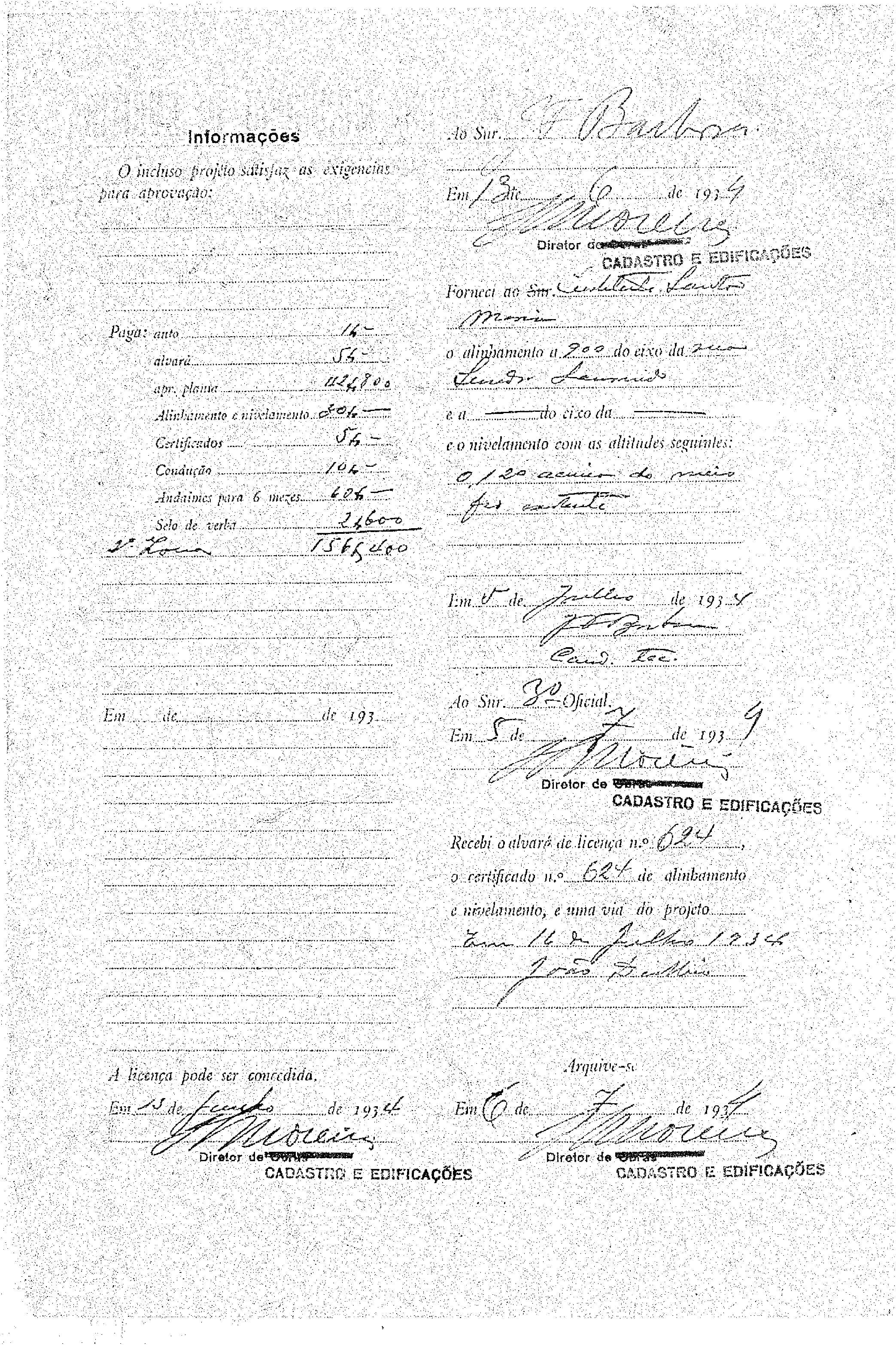 Data do Projeto Arquitetônico: 13/01/1934 a 19/10/1942