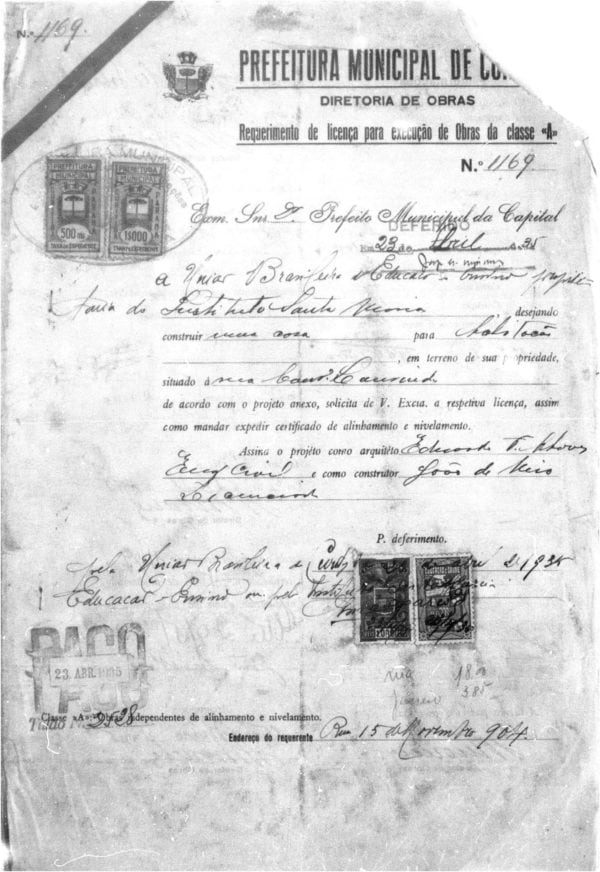 - Alvará nº 1169/1935: edificação de uma casa para habitação, provavelmente destinada a religiosos, professores ou funcionários.