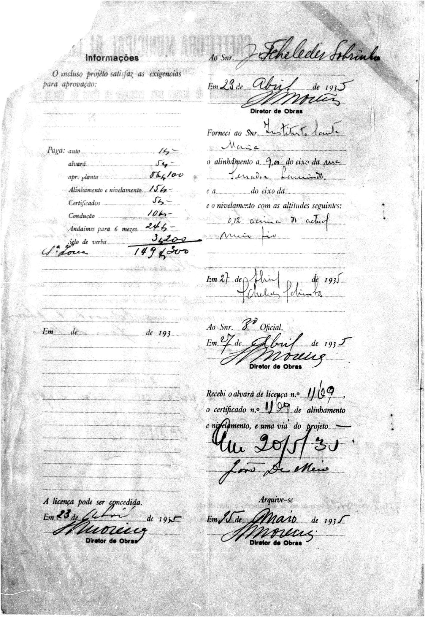 Alvará de Construção: N.º 624/1934; 1169/1935; 2950/1937; 3055/1938; 4279/1939; 5553/1941 e 5323/1942