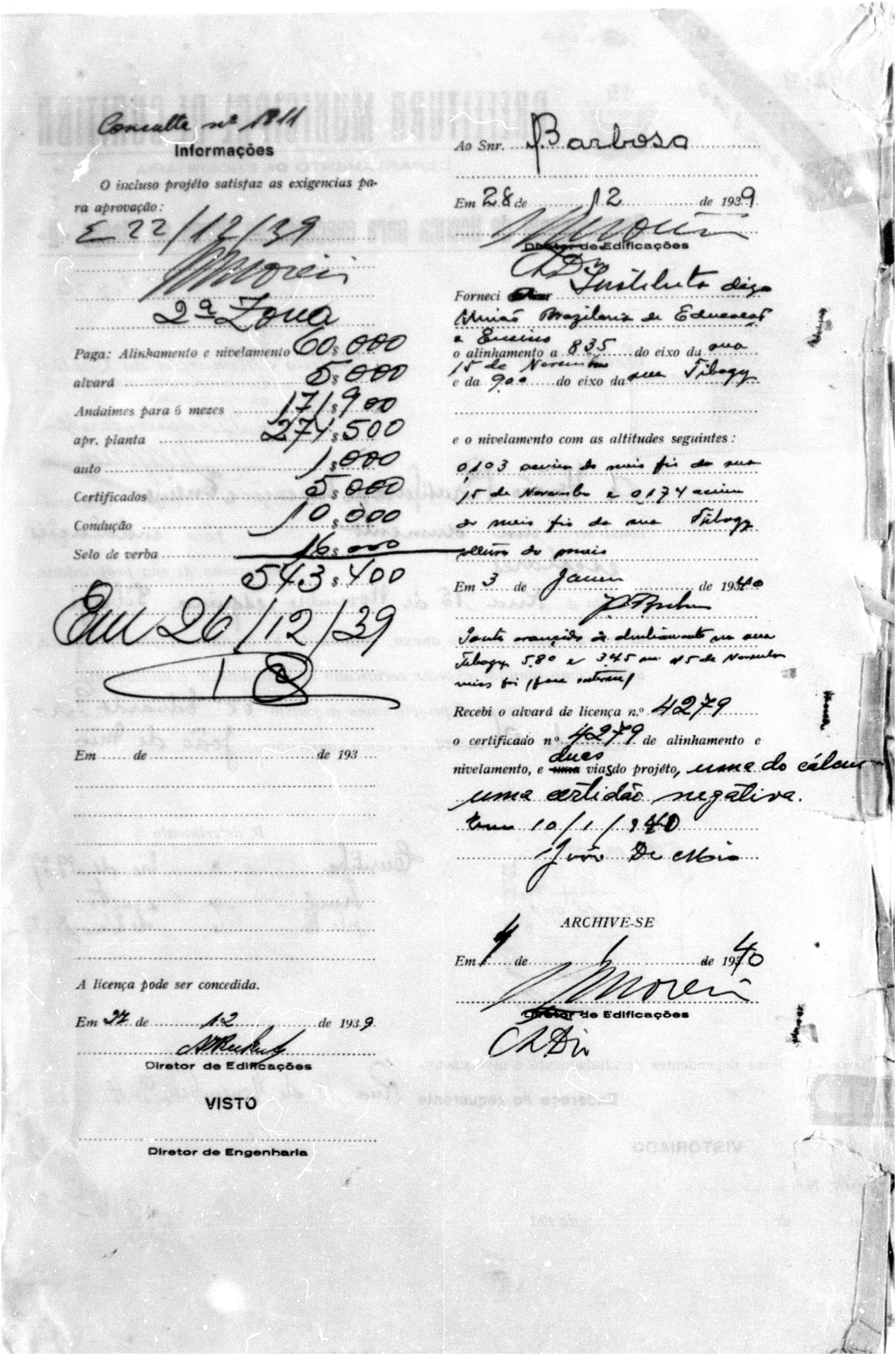 - Alvará nº 4279/1939: expansão vertical e horizontal, com plantas detalhadas para três pavimentos.