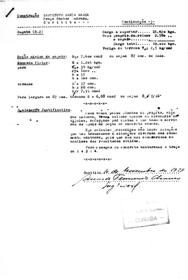 O edifício final, com três pavimentos e área total construída de 5.165 m², tornou-se um marco da arquitetura escolar religiosa em concreto armado no Paraná — técnica ainda emergente na década de 1930, mas já dominada por Chaves com precisão notável.