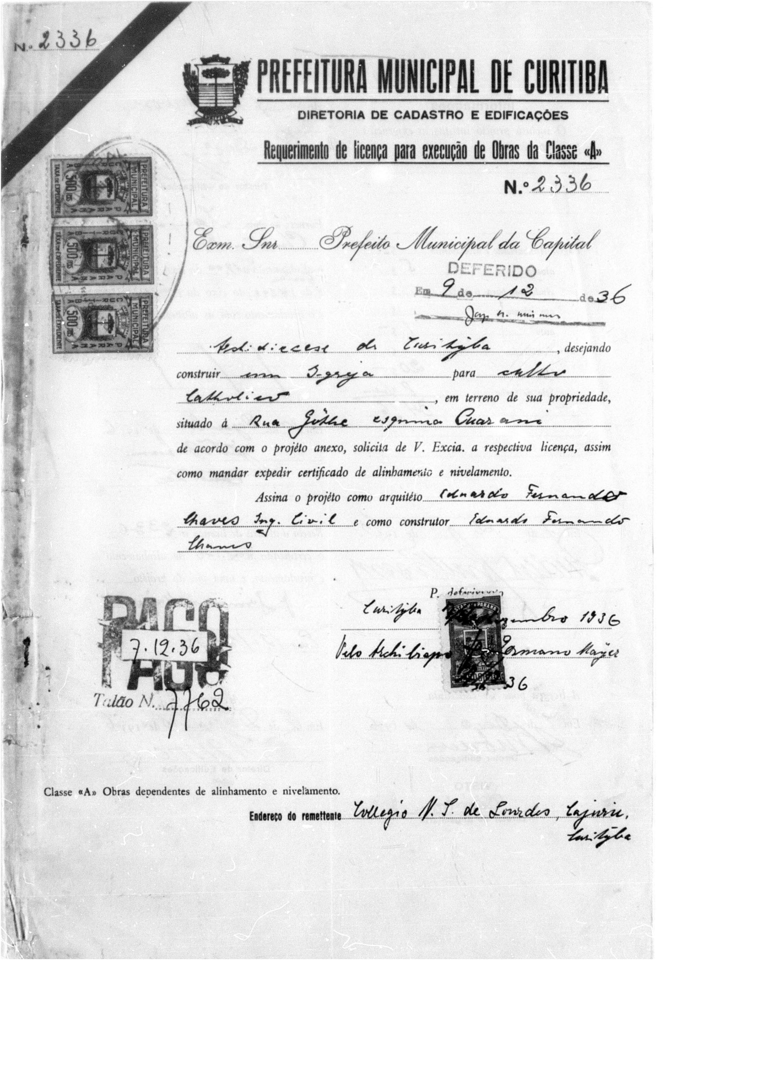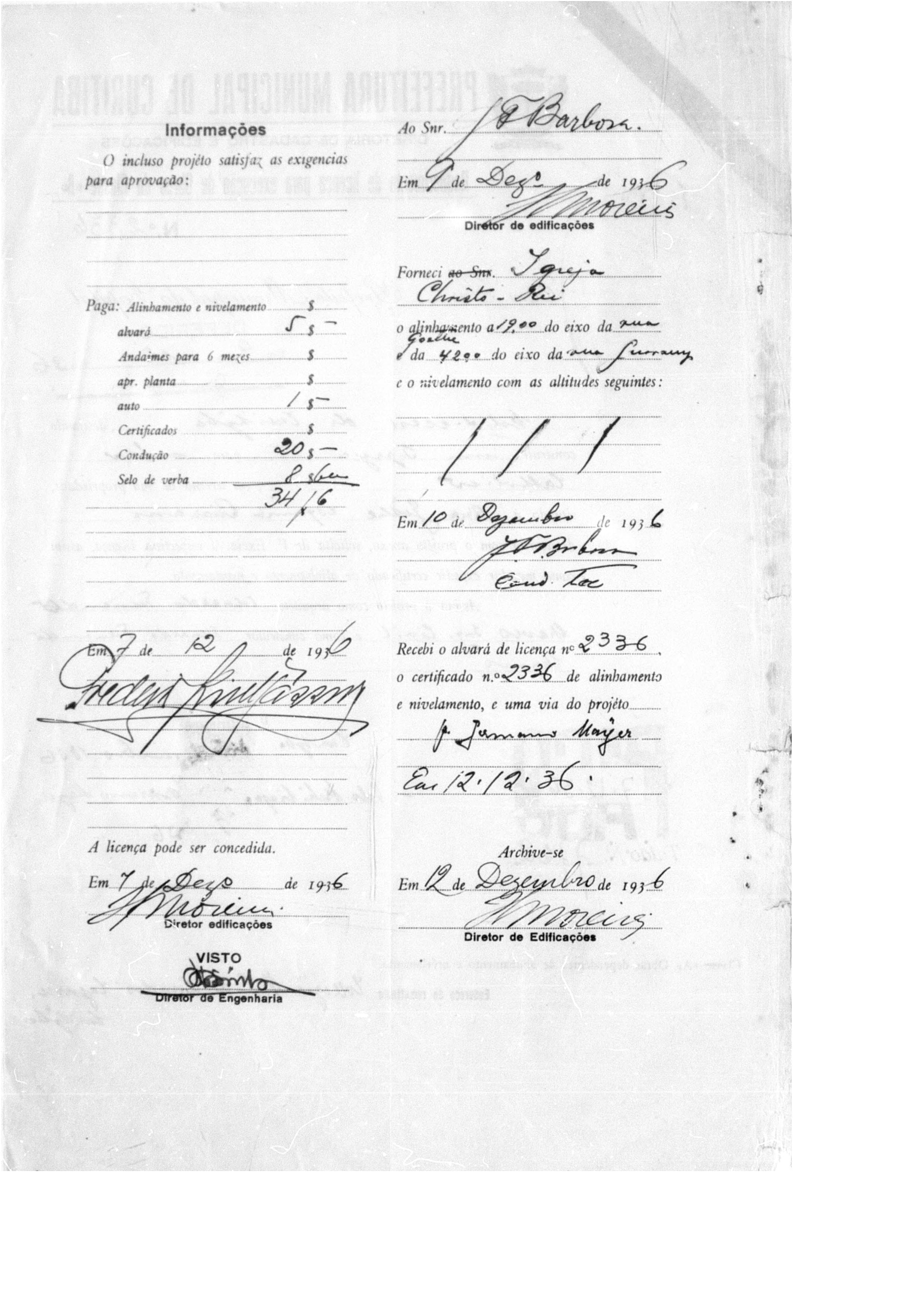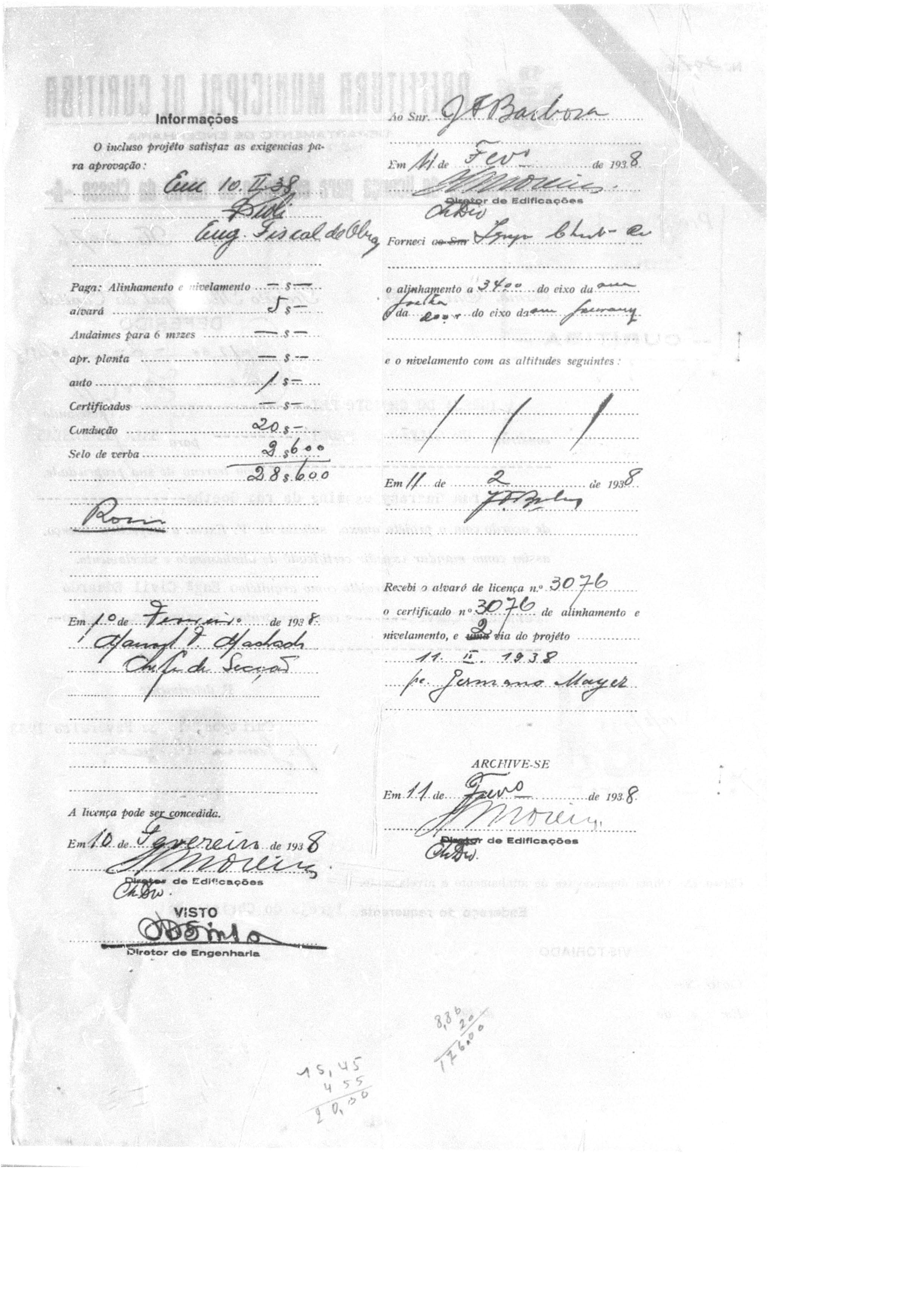 Alvará de Construção: N° 2336/1936 e 3076/1938