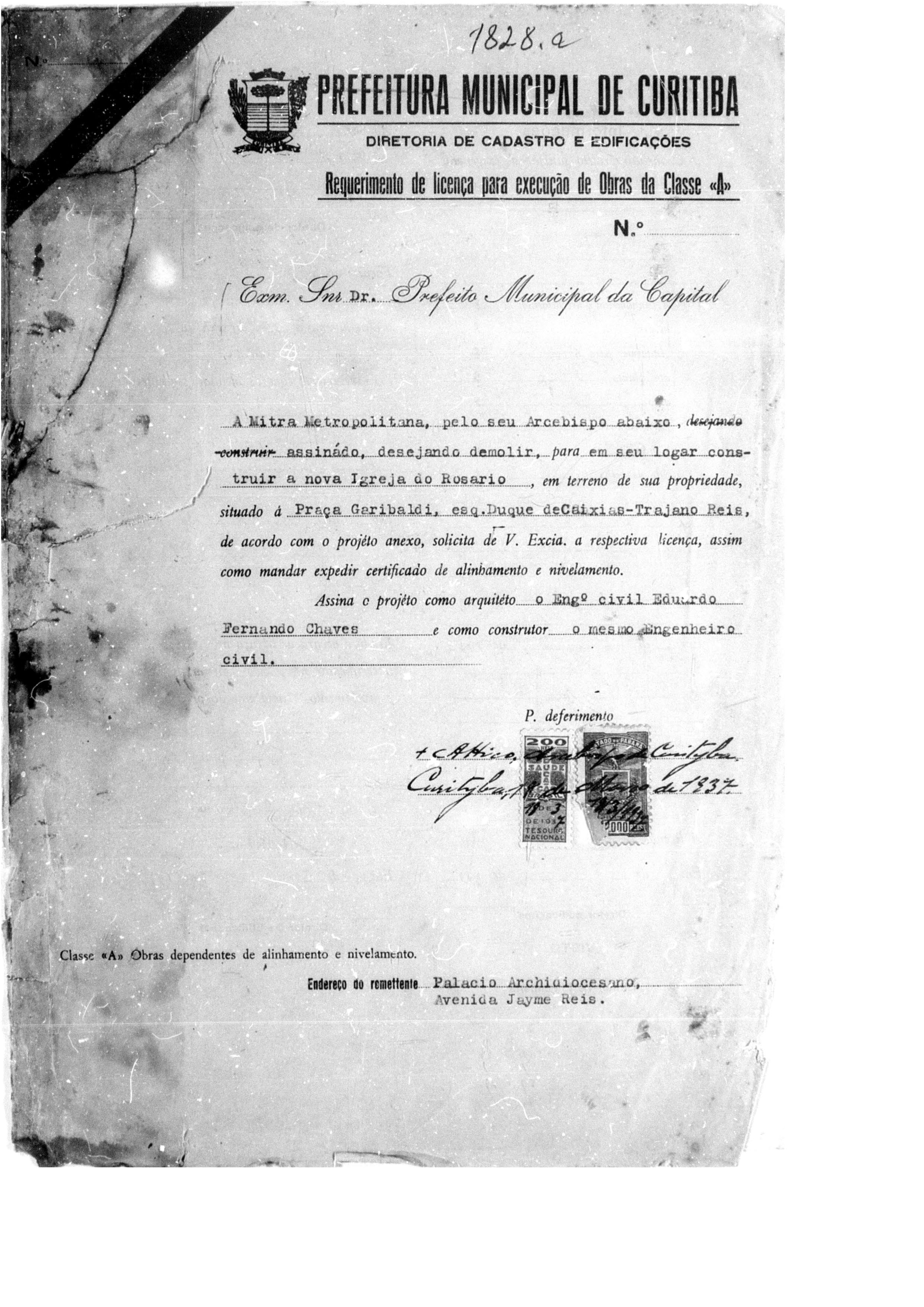 Alvará de Construção: N° 1828/1937