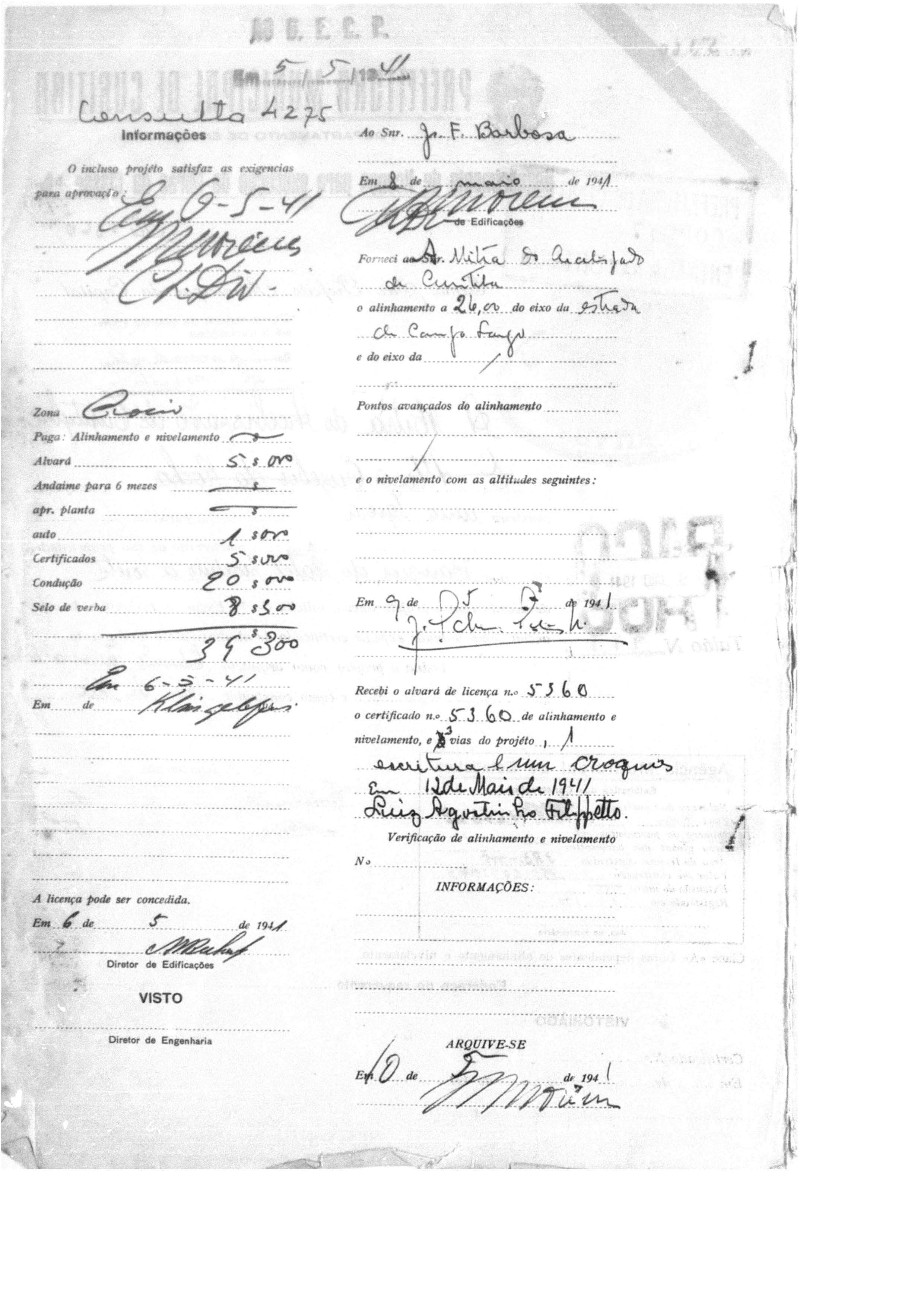 Alvará de Construção: N° 5360/1941