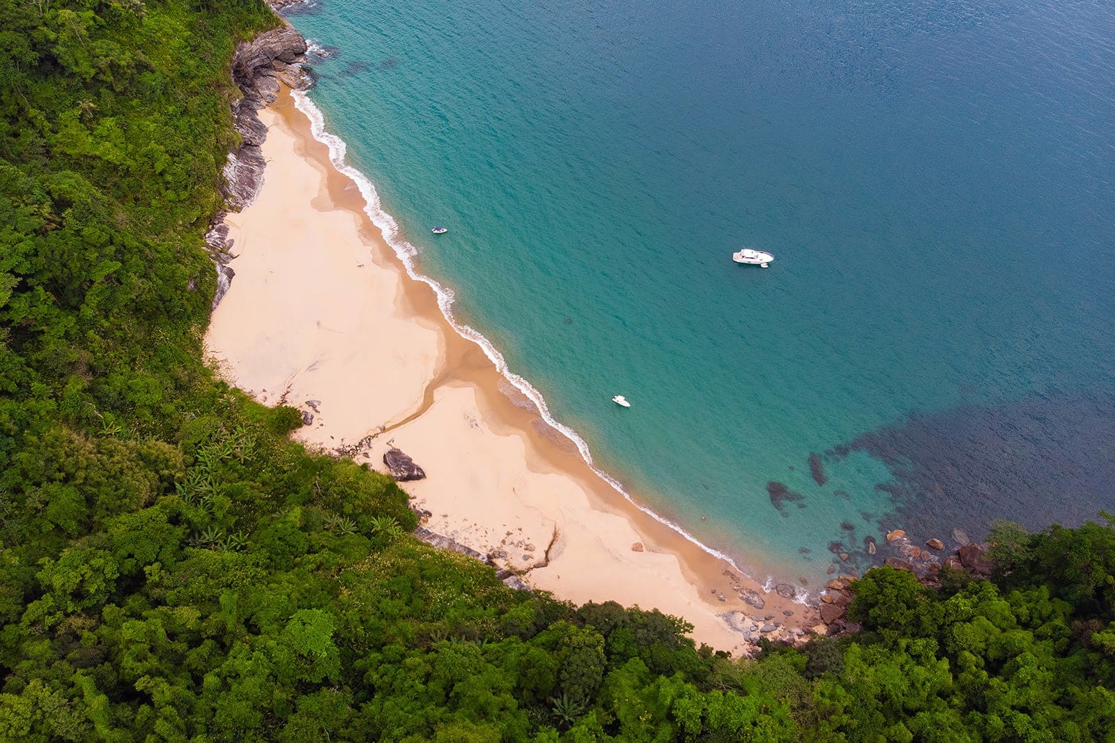 As águas da Praia do Saco costumam ser tranquilas, ótimas para praticar mergulho com snorkel e contemplar a vida marinha. A natureza do lugar impressiona, com vegetação exuberante ao redor e montanhas no horizonte. Você nem vai se lembrar que está tão perto da cidade.