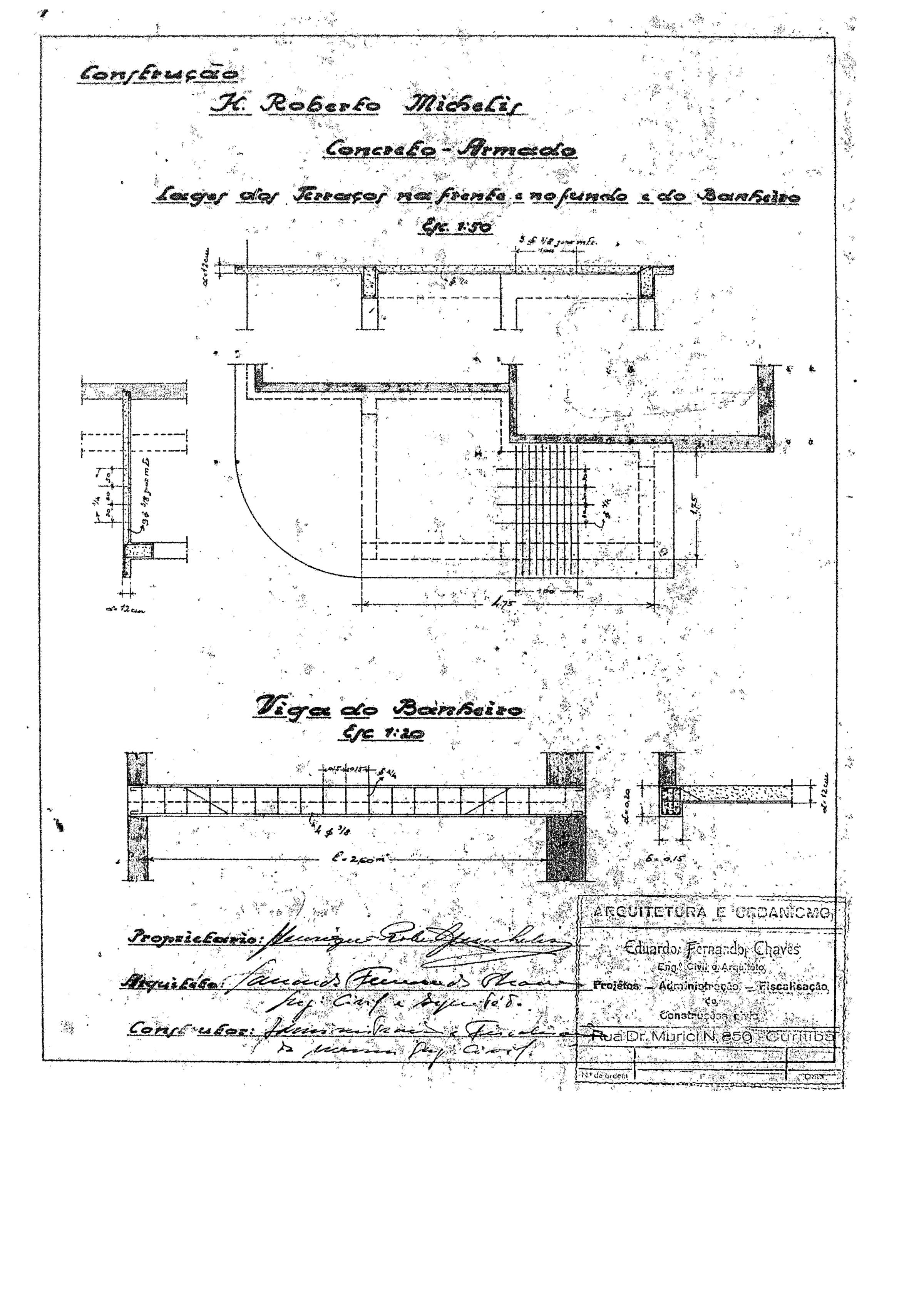 Assim como fez com a residência de Henrique Roberto Michelis, o arquiteto Eduardo Fernando Chaves também assinou o projeto desta casa modesta. A prancha original, hoje digitalizada e armazenada em microfilme, contém: